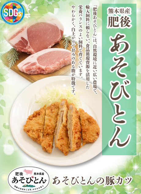 一冨士フードサービス株式会社(本社:大阪府大阪市、代表取締役社長:大西 博史、以下「当社」)では、環境に配慮した農場や飼料で育てられた、熊本県産のおいしいブランド豚「肥後 あそびとん」を使用したSDGsイベントを、2026年4月まで開催しています。