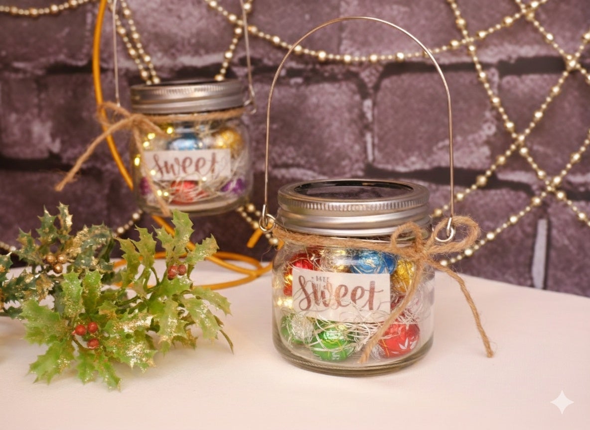 チョコ、グミ、マシュマロなどをびんに詰めて、ピカピカ光るオリジナルランタンを制作。思わず持ち歩きたくなるアイテムです。