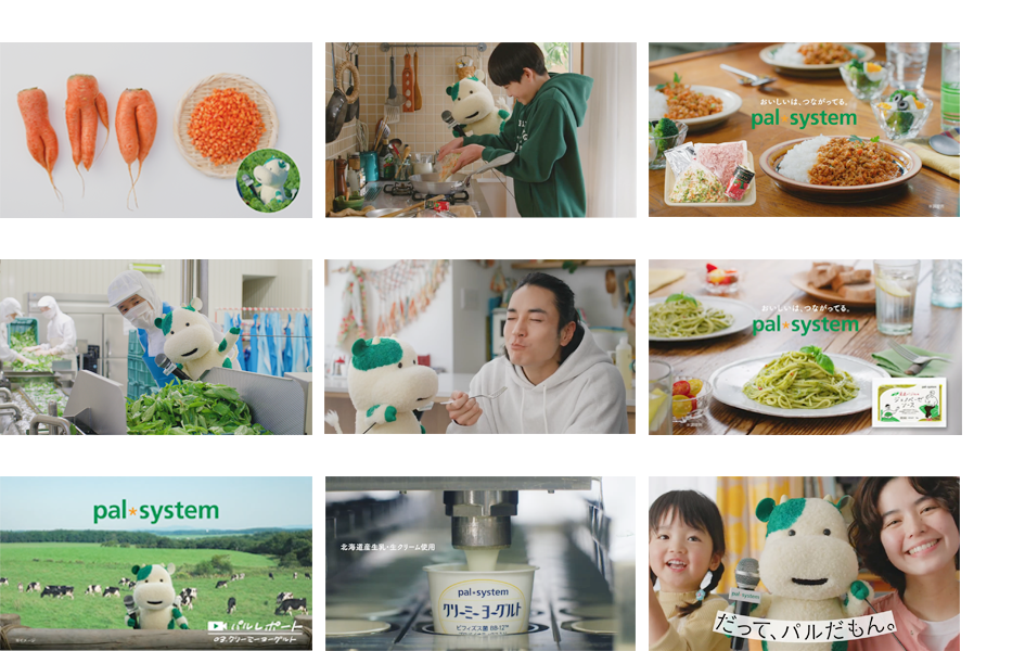 TVCMでは「お料理セット」「産直バジルのジェノベーゼソース」「クリーミーヨーグルト」を取り上げます。食材を育てている提携産地や工場から、パルシステム公式キャラクター「こんせんくん」が現場をレポートします。食卓と産地・工場のおいしいをつなぎます。