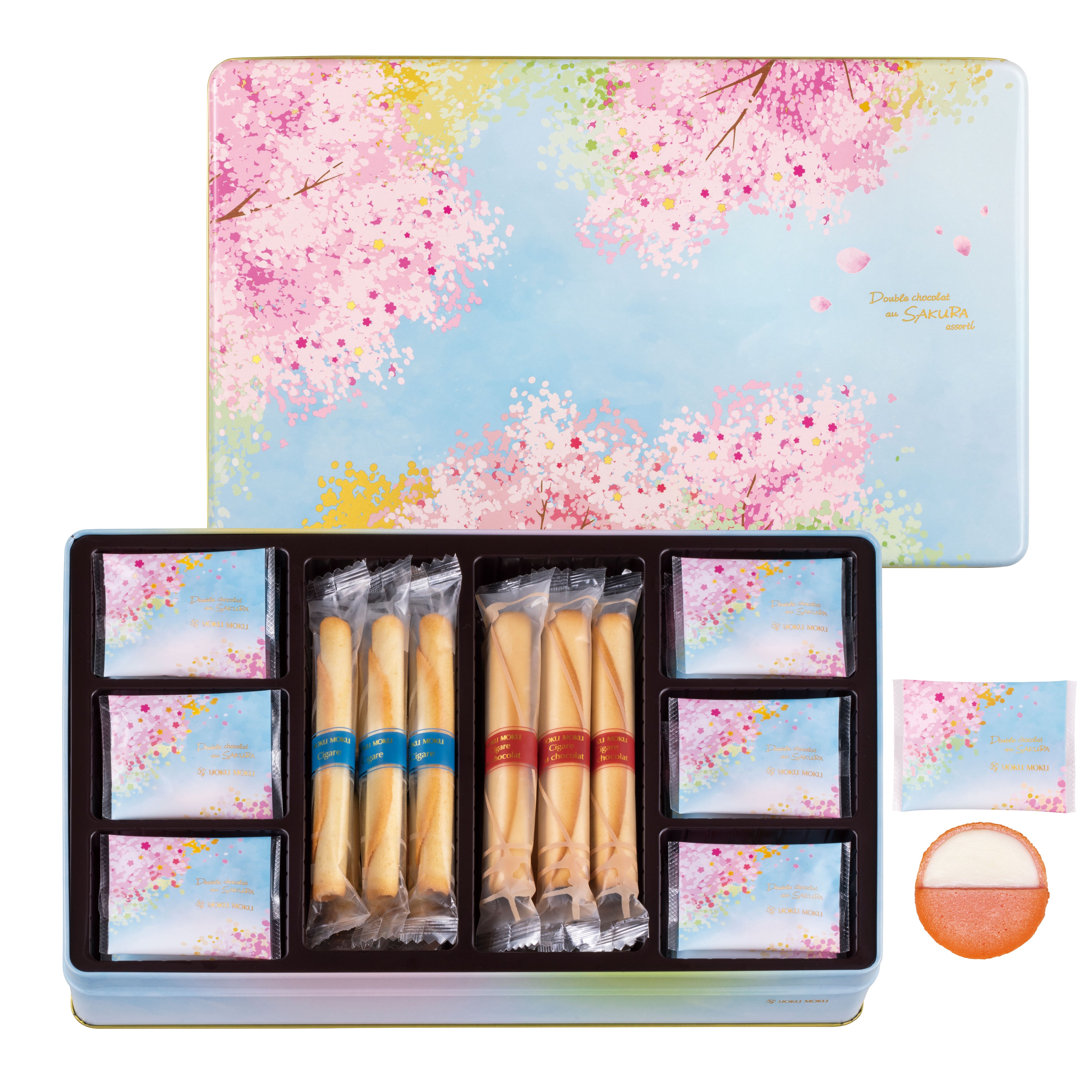 株式会社ヨックモック(本社:東京都千代田区、代表取締役:藤縄 武士) は、2026年2月15日(日)より春限定「ドゥーブル ショコラ オゥ サクラ」を全国のヨックモック店舗で発売します。今年はパッケージデザインがリニューアル。澄み渡る青空と咲き誇る桜を表し、門出を祝う想いを缶デザインに込めました。本商品限定のラングドシャーは、はらりとくちどけの良い食感に焼き上げ、桜風味のホワイトチョコレートをサンドしました。日本の春を象徴する桜は、海外でも和の美しさを表す花として人気が高く、国内外の方への贈り物やお花見のお供にぴったりです。進学や就職などの新生活を祝うプレゼントはもちろん、ご自身でお花見気分を楽しめるギフトにも。今年の春はヨックモックのお菓子で心華やぐひとときをお楽しみください。