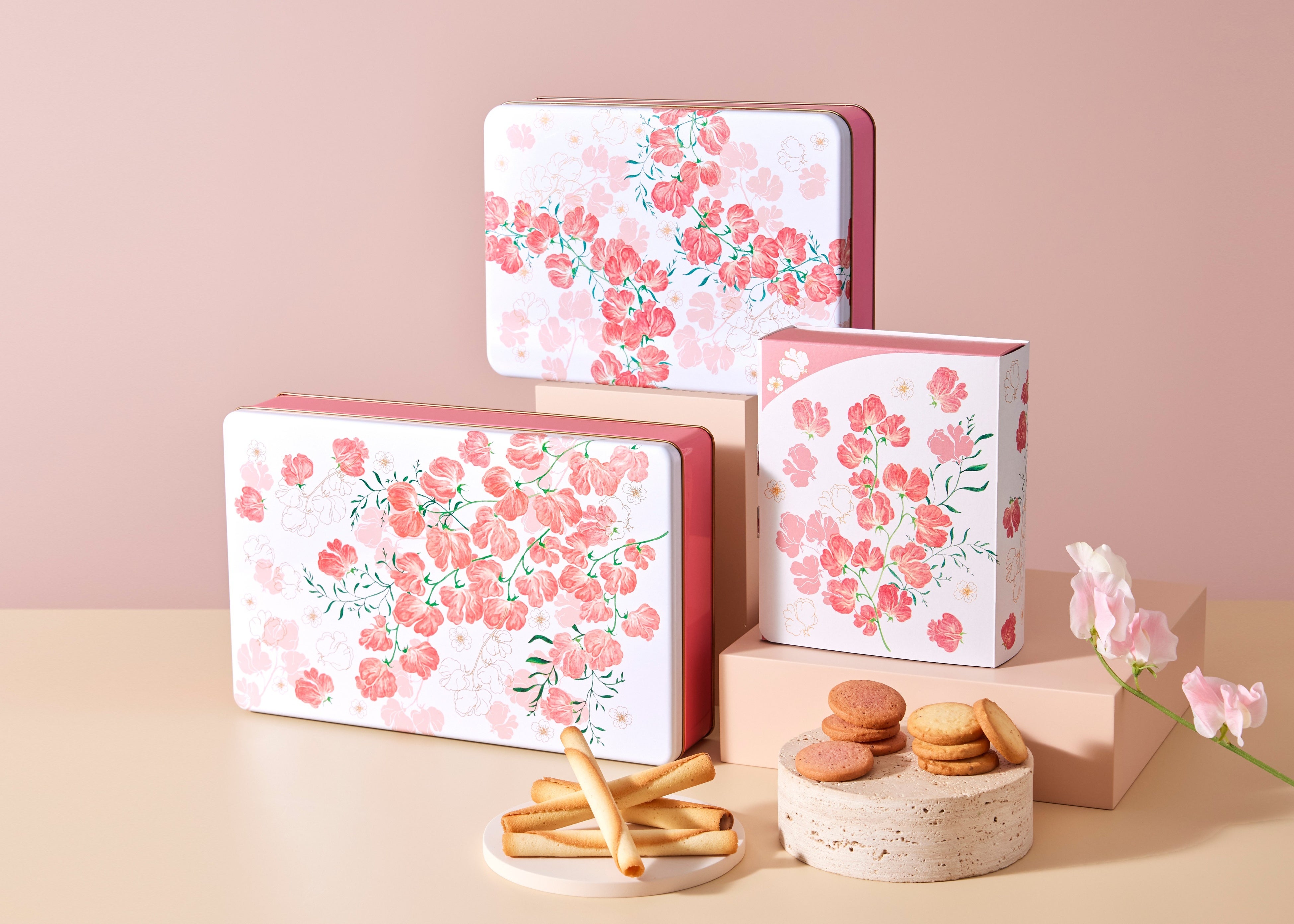 春は出会いと別れの季節。これからの関係性の成熟とつながりを願い、この時季に相応しい「門出」という花言葉を持つスイートピーを描きました。感謝やお祝いの気持ちを込めて花を贈るように、この春はお菓子で想いを届けてみませんか。