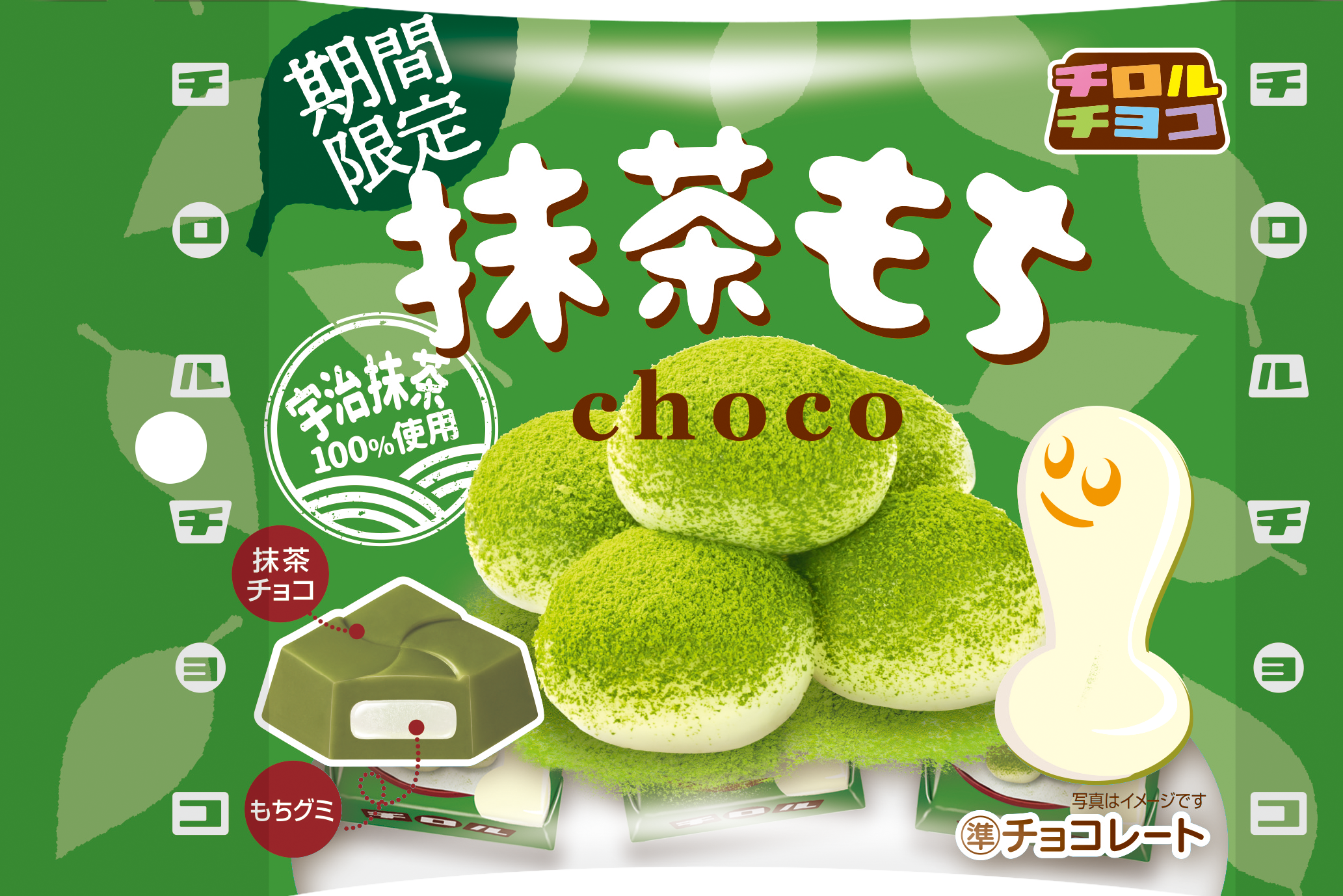春先から新緑の季節にかけてチロルチョコで手軽に抹茶を楽しんでほしいという想いから開発した商品です。チロルチョコの中でも人気の食感のもちグミをセンターにいれ、宇治抹茶100%使用(抹茶原料中に占める割合)の抹茶チョコで包みました。これからの季節、お花見のおやつにもピッタリな商品です。
