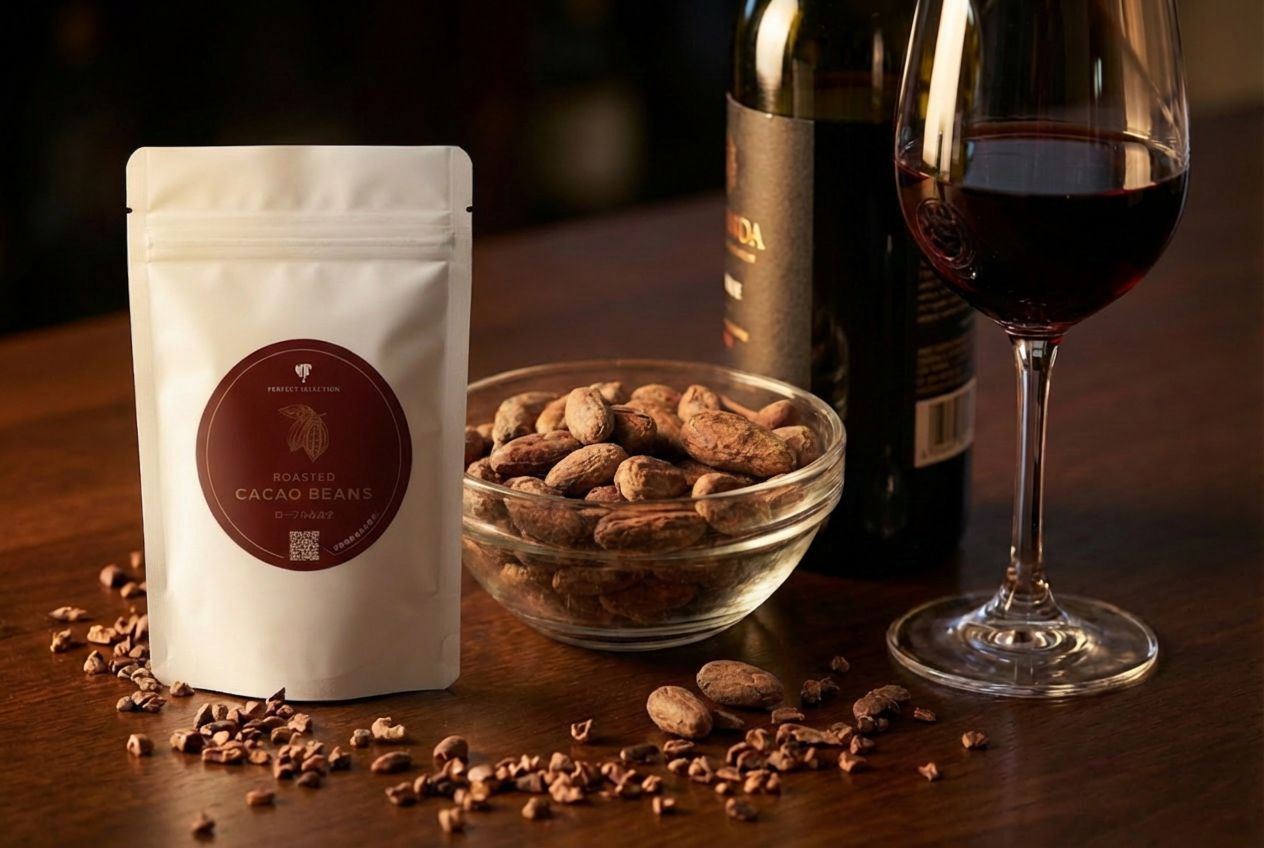 フーズカカオ株式会社(本社:東京都、代表取締役社長:福村瑛、以下「フーズカカオ」)は、ワインの輸入販売、ワインバーの運営をしているピーロート・ジャパンにおいて、フーズカカオが開発した「タイ・ランパーン産カカオ豆のローストカカオ(中深煎り)」が採用され、ワインとともに楽しむ特別ギフトとして採用されたことをお知らせいたします。