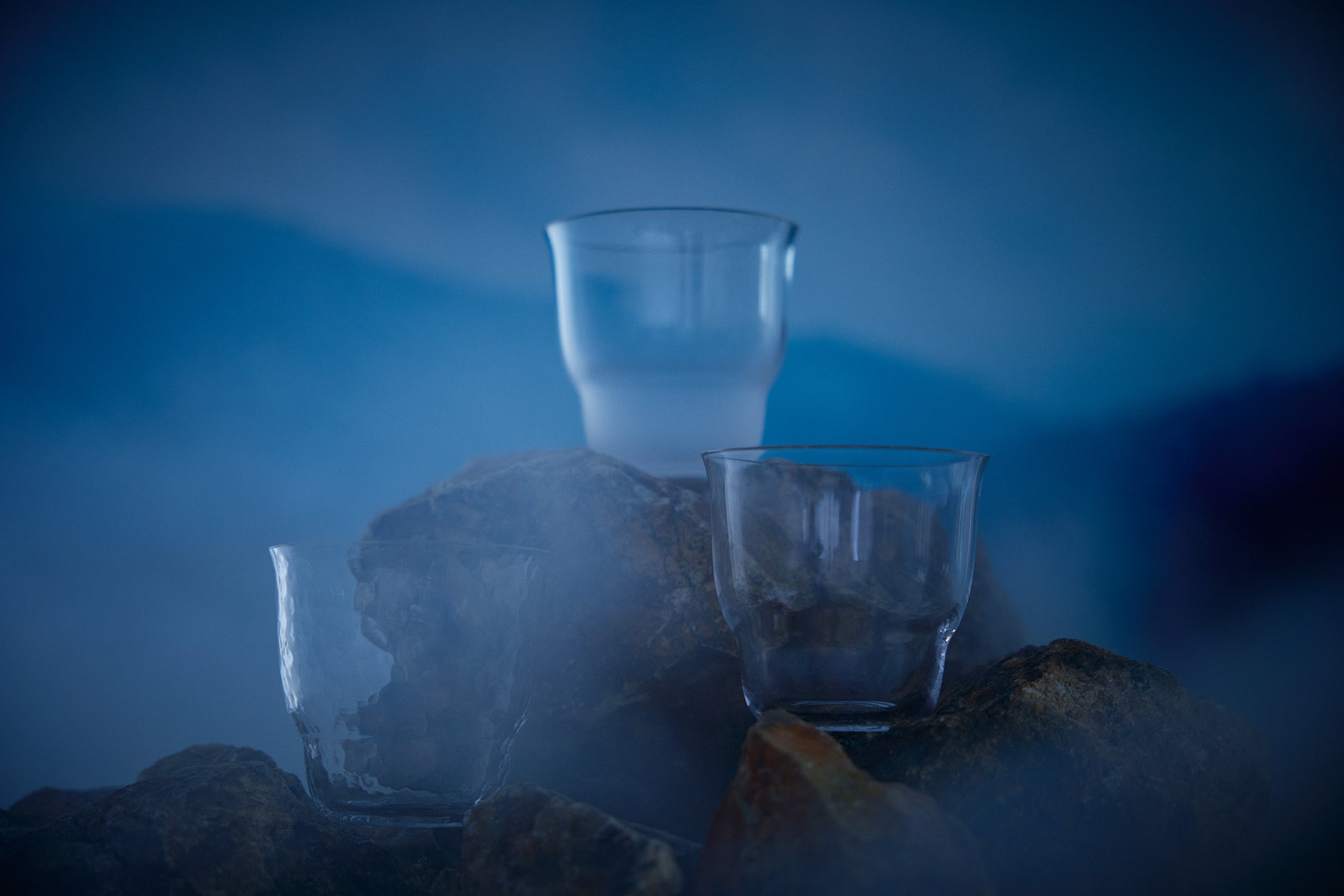 今回、フランスの見本市「メゾン・エ・オブジェ」へ出品した新商品は「NUAGE/ニュアージュ」という抹茶のためのグラスです。水・霧・石から着想を得た、スムース・フロスト・テクスチャーという異なる3種類の加工仕上げで、自然の要素と季節の移ろいを表現いたしました。グラス「ニュアージュ」は手に自然に馴染むフォルムで、感覚に訴える現代的な茶事を表現。 余計な装飾をそぎ落としたミニマルで端正な佇まいは、茶の所作に寄り添い、茶畑で迎える清々しい朝の静けさを想起させます。