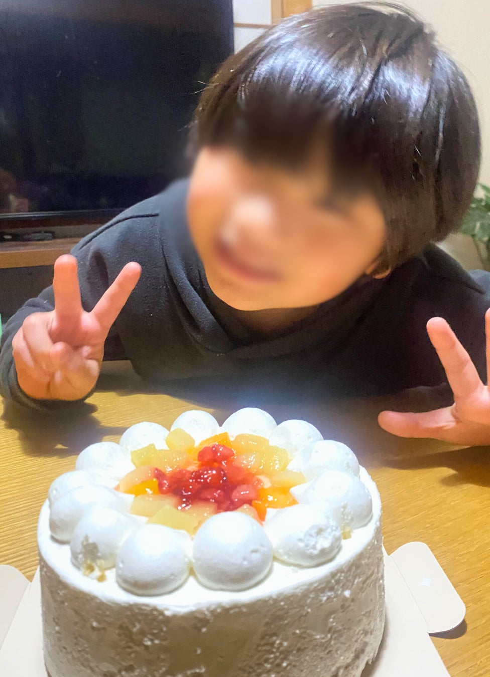 「ケーキ屋さんのケーキを食べる事が無いので、毎年母親の作るケーキとは見た目も違いますし、ケーキの箱にまず子ども全員が目をキラキラ輝かし、箱を開け中を嬉しそうに覗く子どもの顔を見るととても嬉しく胸がギューっとなりました。ケーキを出したら本人は勿論すごいーー!!と宝石を見るような反応で、他の兄弟も飛んで喜んでいました。お口いっぱいに頬張り、とても幸せな誕生日を、過ごせました。本当に幸せな時をありがとうございました。」