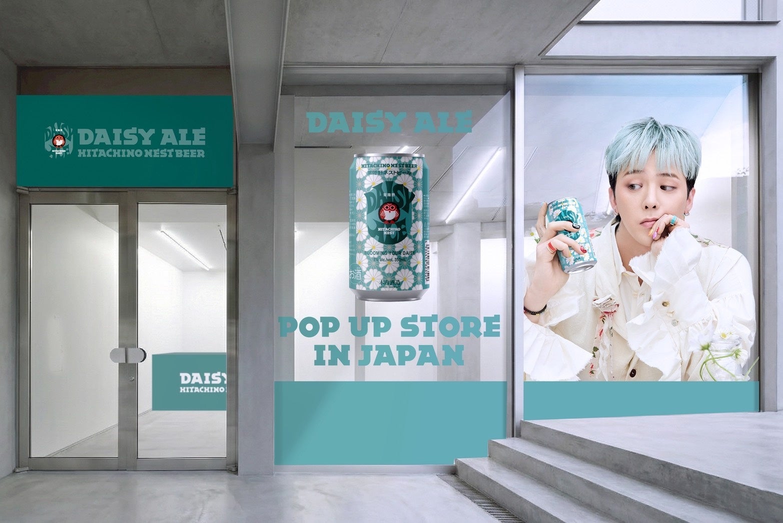 本ポップアップストアでは、常陸野ネストビール デイジーエールが持つ世界観を、味わいだけでなく空間全体で体感していただけます。グローバルアンバサダーである世界的アーティストG-DRAGONによるプロモーションムービーの演出や、デイジーエールをモチーフとしたフォトスポットエリアも登場。さらにはビールセットやオリジナルグッズを販売いたします。
