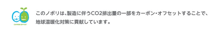 当社店舗で使用しているのぼりの一部には、製造時に排出されるCO₂の一部を「カーボン・オフセット」した資材を採用しています。
