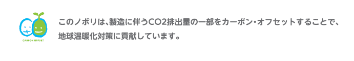 当社店舗で使用しているのぼりの一部には、製造時に排出されるCO₂の一部を「カーボン・オフセット」した資材を採用しています。