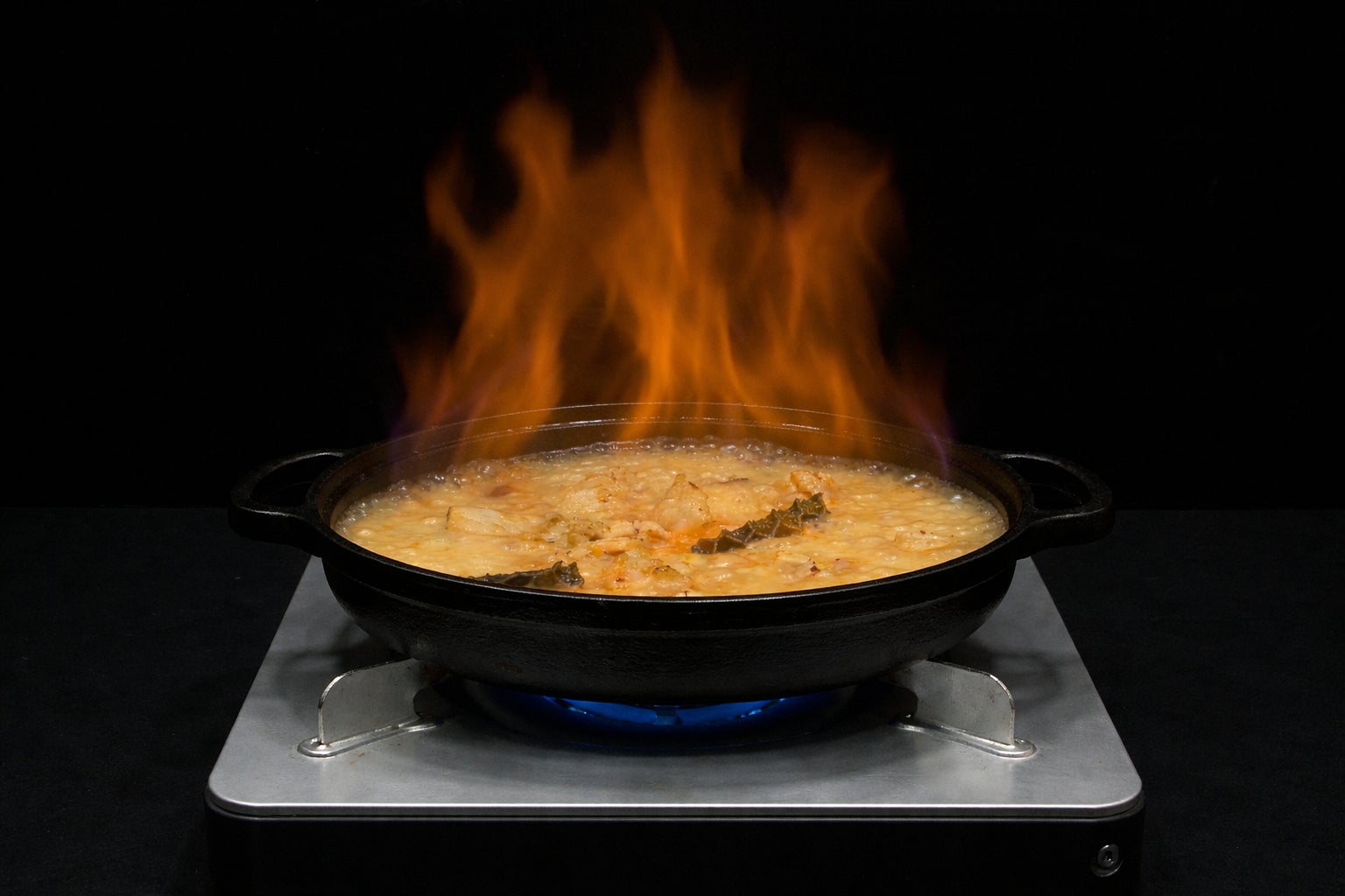 ② テーブル上が火の海!?「燃えるすき焼き」
