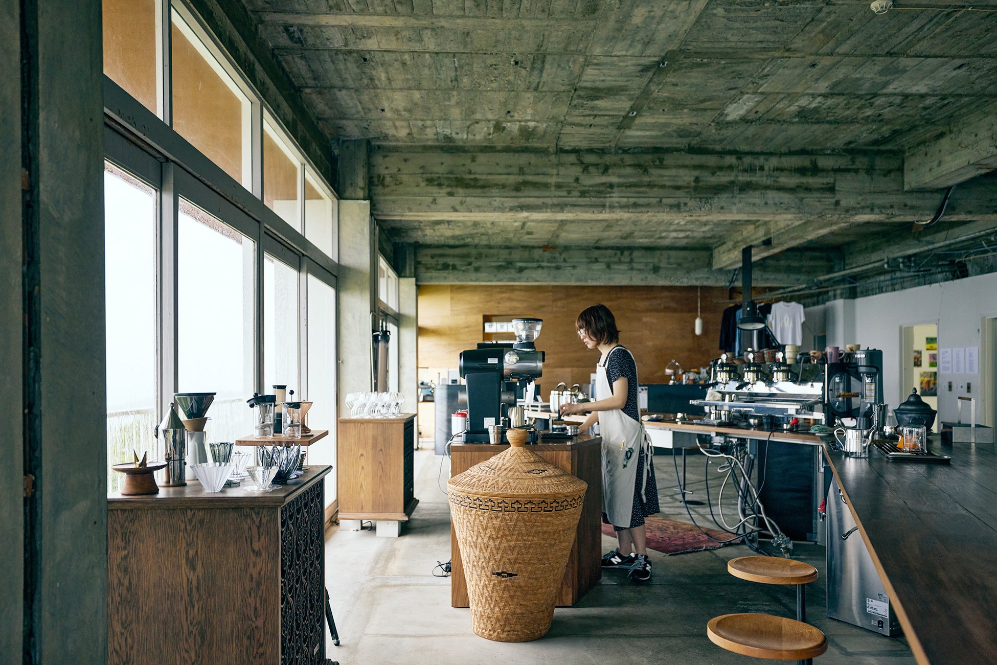 岡山県瀬戸内市の牛窓オリーブ園内にある、焙煎所が併設された珈琲専門店「山の上のロースタリ」。