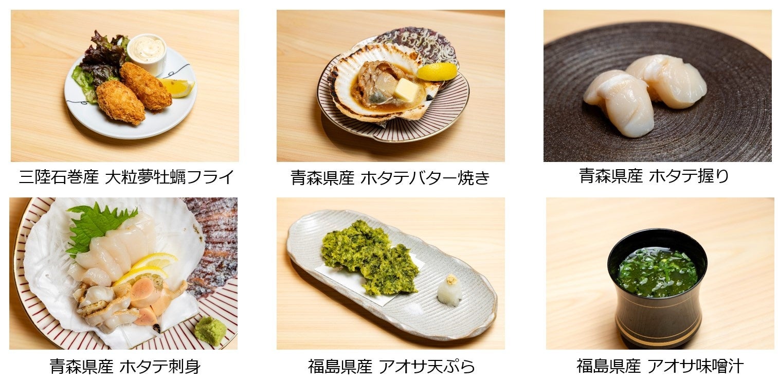 【対象食材】ホタテ(青森)、カキ(宮城)、メヒカリ・アオサ(福島)