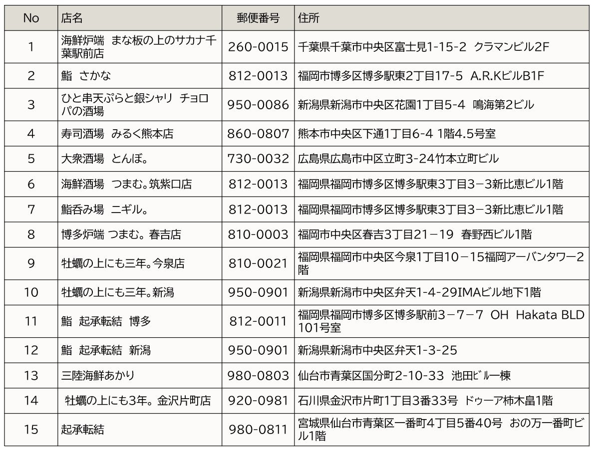 経済産業省では、ALPS処理⽔の海洋放出に伴い、⼀部の国・地域において⽇本産⽔産物への輸⼊規制が継続している状況等を受け、国内消費の拡⼤と⽔産業の活性化を⽬的とした取り組みを進めています。このたび、福岡・九州エリアを中心に、全国の主要都市で居酒屋・レストランを展開する飲食チェーンの株式会社Keytableが運営する15店舗と「九州の活性化」を使命に掲げ、九州全域で50店舗以上を展開する飲食チェーンの株式会社Bebloomが運営する15店舗の計30店舗にて、三陸・常磐産の食材を活かしたオリジナルメニューを期間限定で提供します。