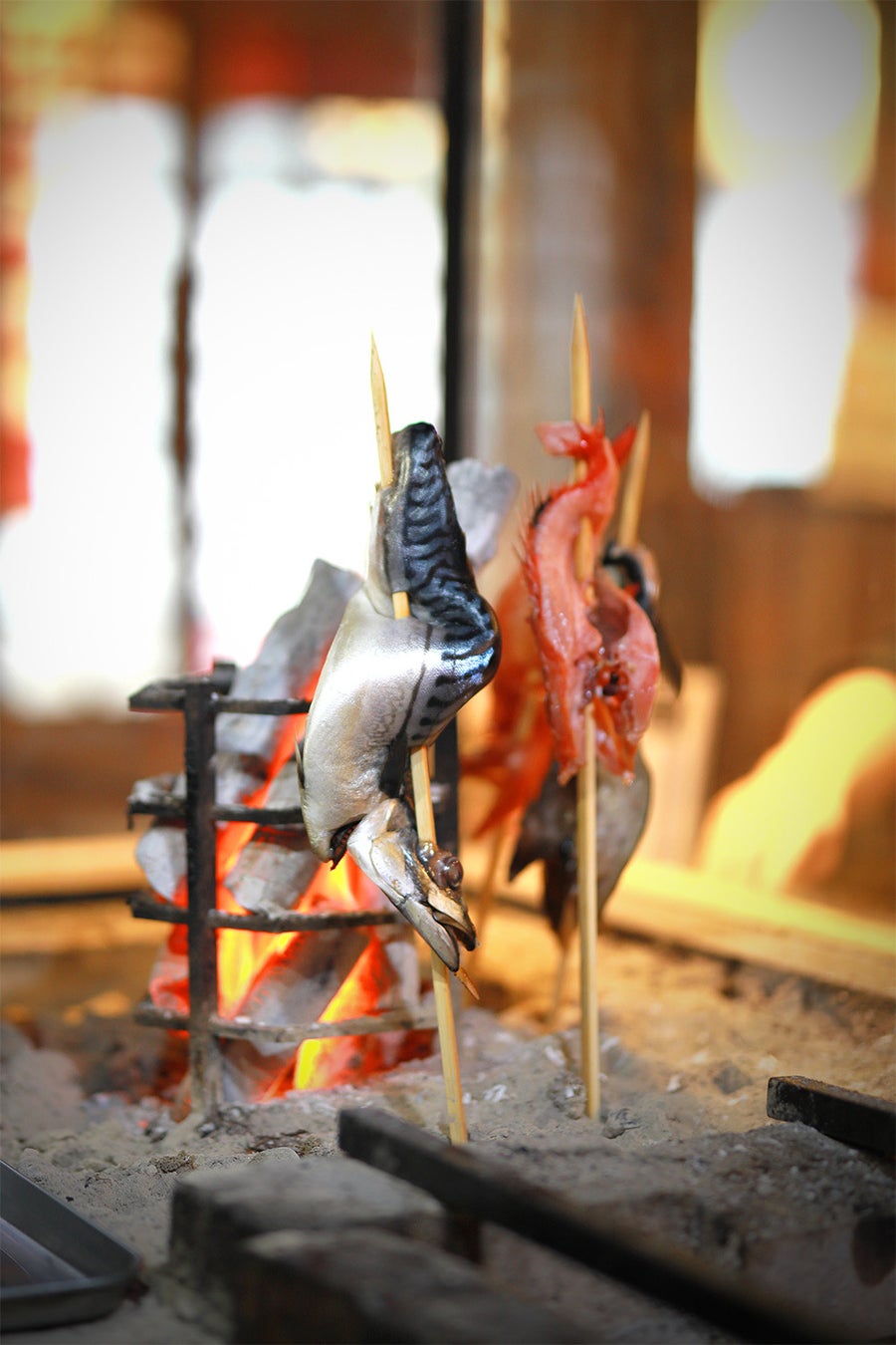 ・炭火焼きをカウンター越しに提供する「ろばた焼」スタイル