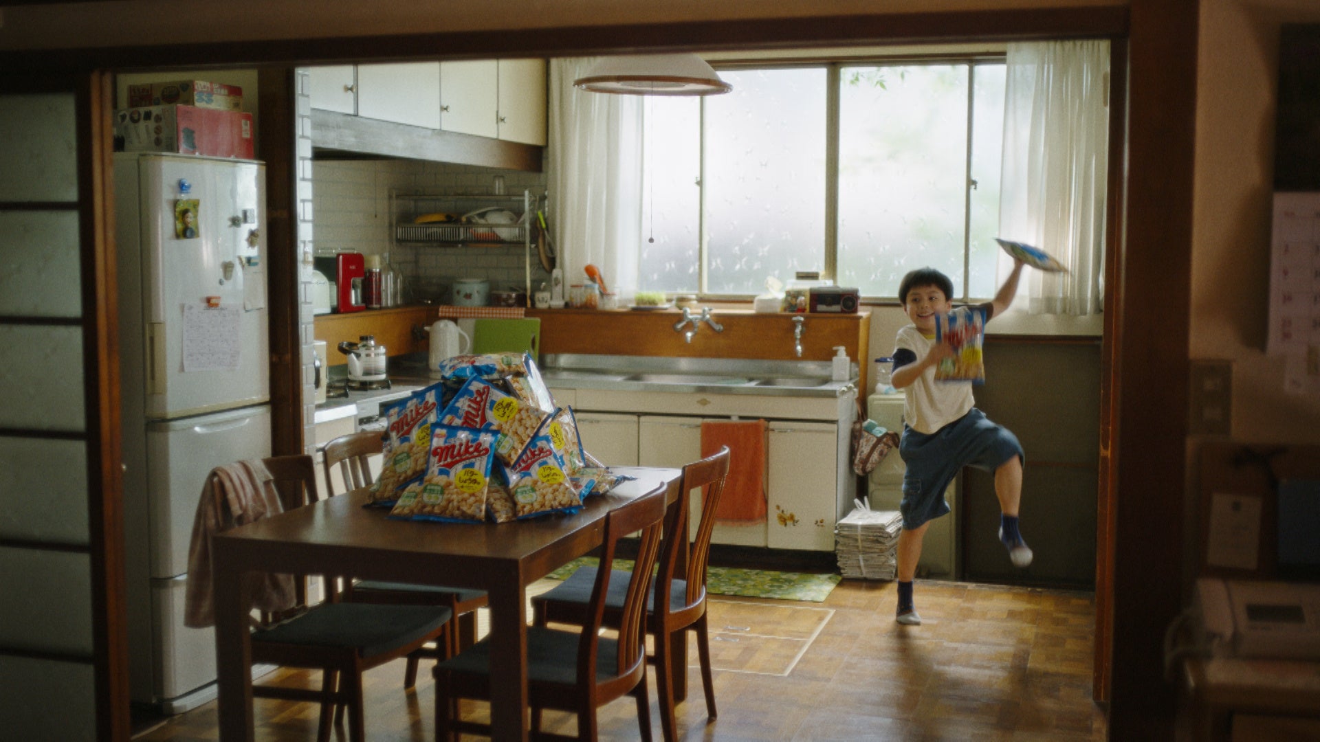 『マイクポップコーン』をたくさん買ったことが嬉しくて踊ってしまう少年。ひとりじめしようと考えていたところ、家族に見られてしまい、一緒に食べることにするというストーリー。『マイクポップコーン』のようにやみつきになる音楽とコミカルなダンスで、「ポップで楽しい」世界観を表現しています。また「ひとりじめ」篇は、ポップコーンのおいしさだけではなく食物繊維が入っていることにも言及。ラストの「みんなの味!マイクポップコーン」というメッセージには、ポップコーンは多世代で楽しめる「いいおやつ」であることを表現している点もポイントです。