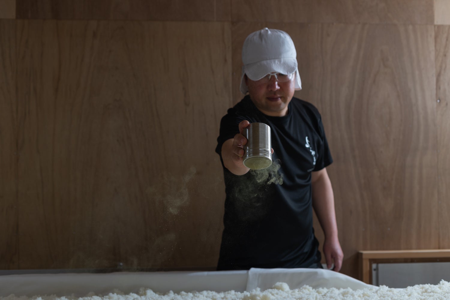 人の手や目で確かめながらの種麹作業