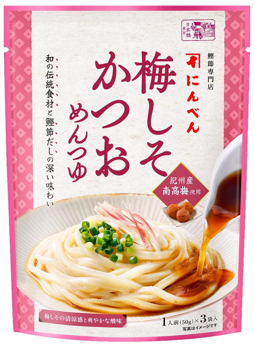2025年3月発売の「柚子こしょうめんつゆ」「一味唐辛子めんつゆ」では、にんべんの鰹節だしと和の香辛料を掛け合わせることで、辛さの中にある奥深い味わいを提供しました。今回、和食の味を支えてきた「鰹節だし」に、古くから食欲が落ちる季節にも親しまれてきた「和の伝統食品」を掛け合わせることで、伝統的な味でありながら深みのある新しい味わいをお愉しみいただけます。