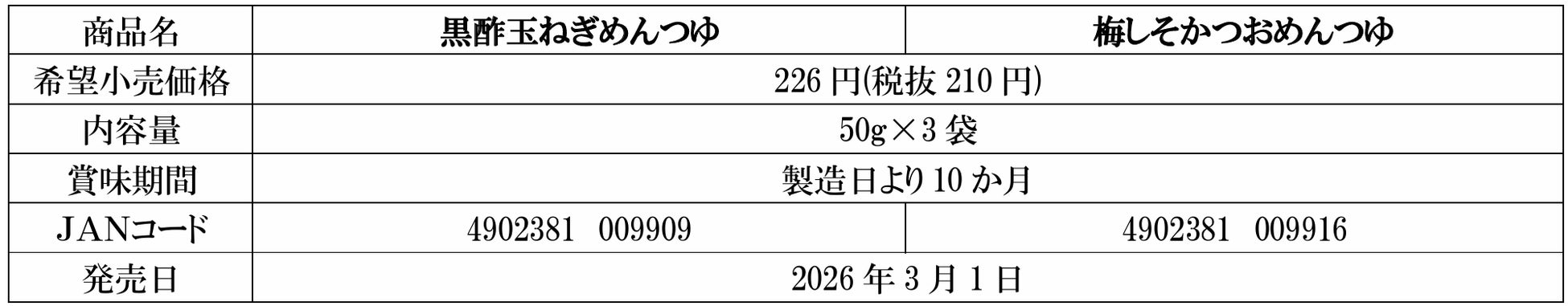 株式会社にんべん(東京都中央区、代表取締役社長 髙津伊兵衛)は、涼味向け個食用めんつゆ「黒酢玉ねぎめんつゆ」「梅しそかつおめんつゆ」を2026年3月1日(日)より新発売いたします。本品は、2025年3月に発売した「柚子こしょうめんつゆ」「一味唐辛子めんつゆ」に次ぐ新フレーバーです。近年の長引く夏の暑さを背景に、夏に人気の“酸味のあるさっぱりとした味わい”に着目しました。鰹節だしと相性の良い国内製造黒酢と紀州産南高梅をそれぞれ合わせることで、さっぱりとしながらも奥行きのある、本格的な和の味わいに仕上げました。個食パッケージなので使い切りやすく、1人前から気軽にお愉しみいただけます。