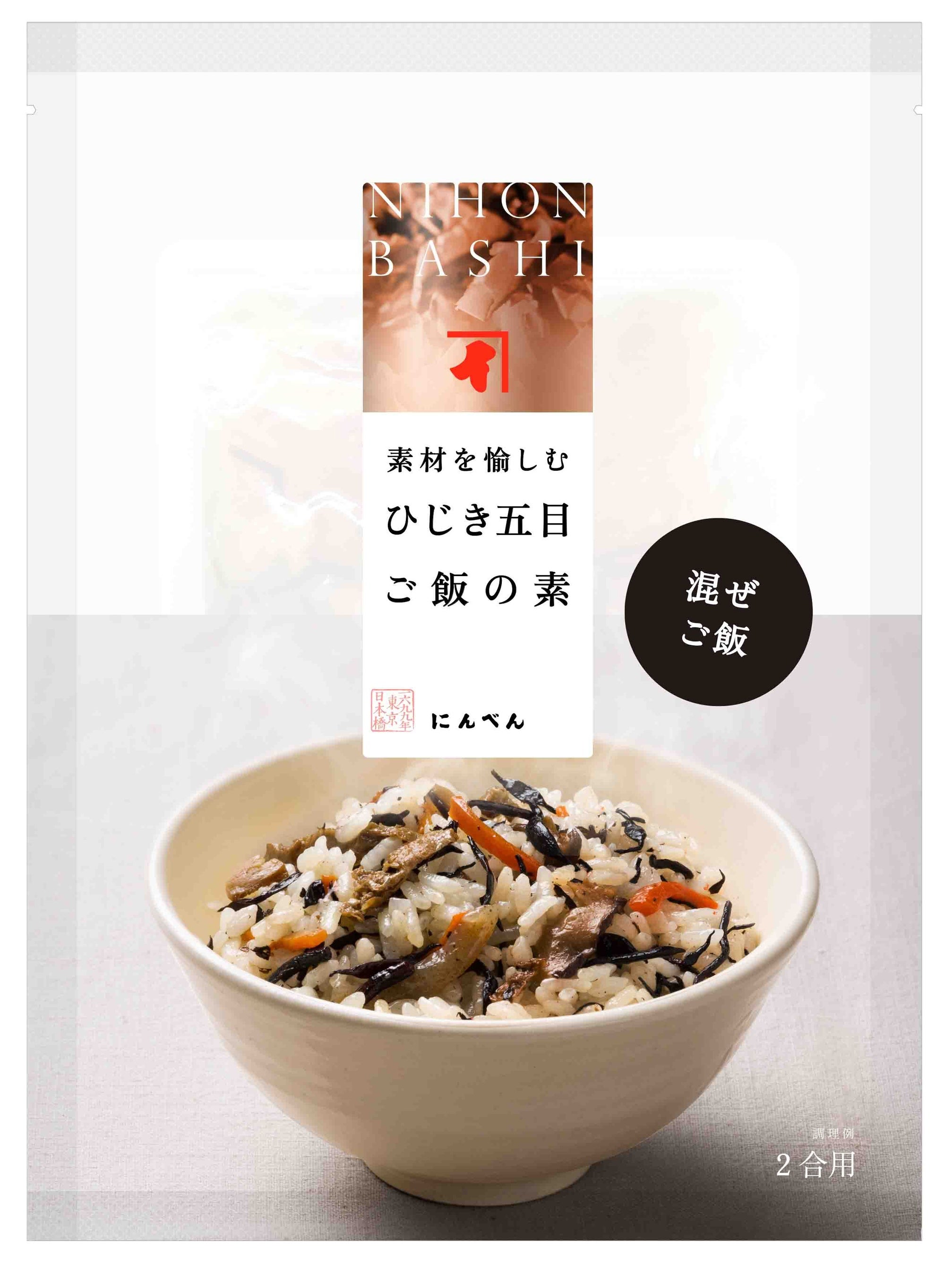 具材には、ひじき・にんじん・こんにゃく・油揚げ・椎茸の5種を使用。彩り豊かな具材が絶妙に絡み合い、本枯鰹節だしのうま味と淡口醤油のコクが調和した混ぜご飯を、ご家庭で手軽に召し上がりいただけます。