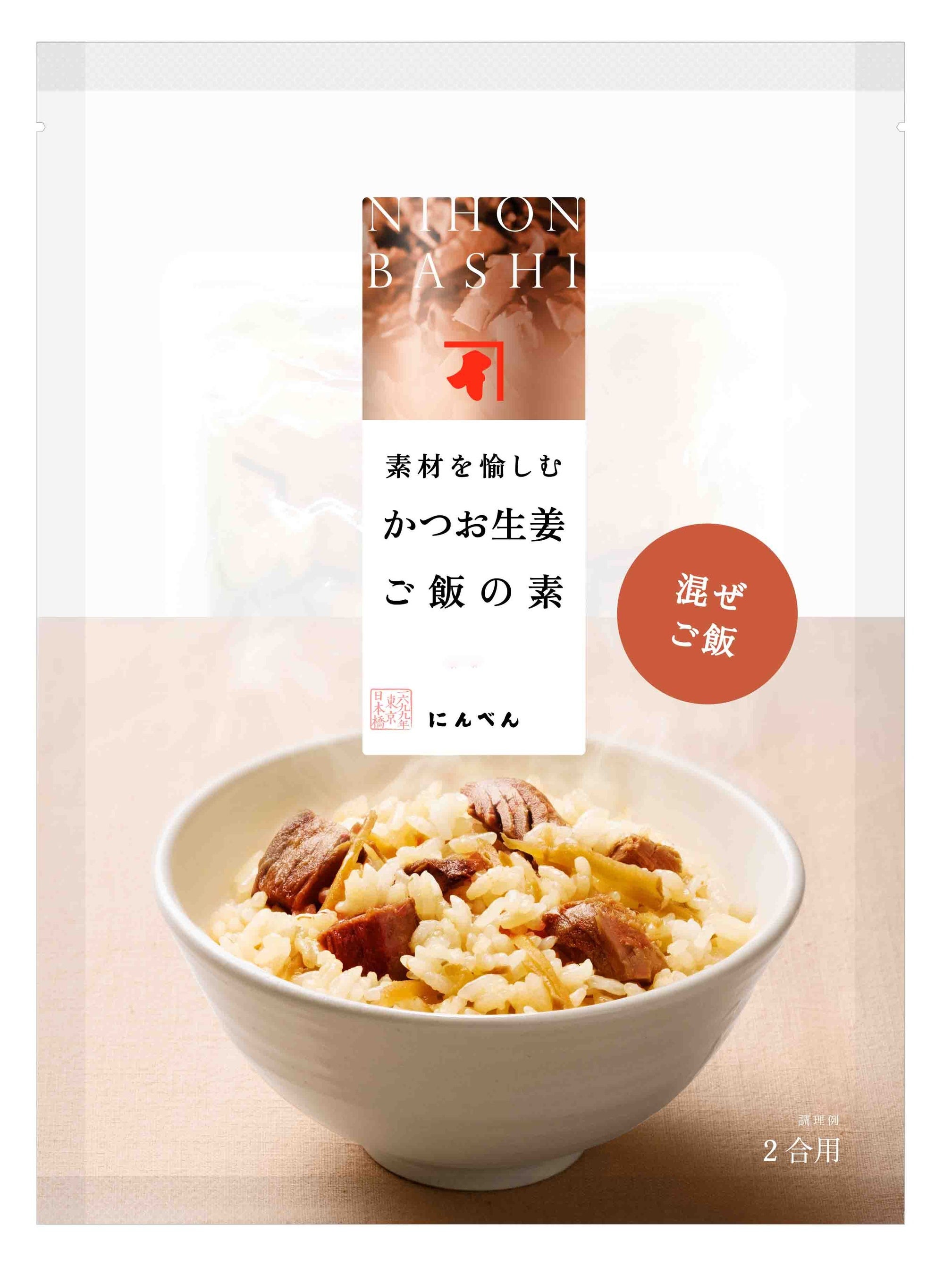 うま味たっぷりのかつおなまりと香り豊かな生姜が引き立て合う、鰹節専門店にんべんが手掛ける混ぜご飯をご家庭で手軽に召し上がりいただけます。