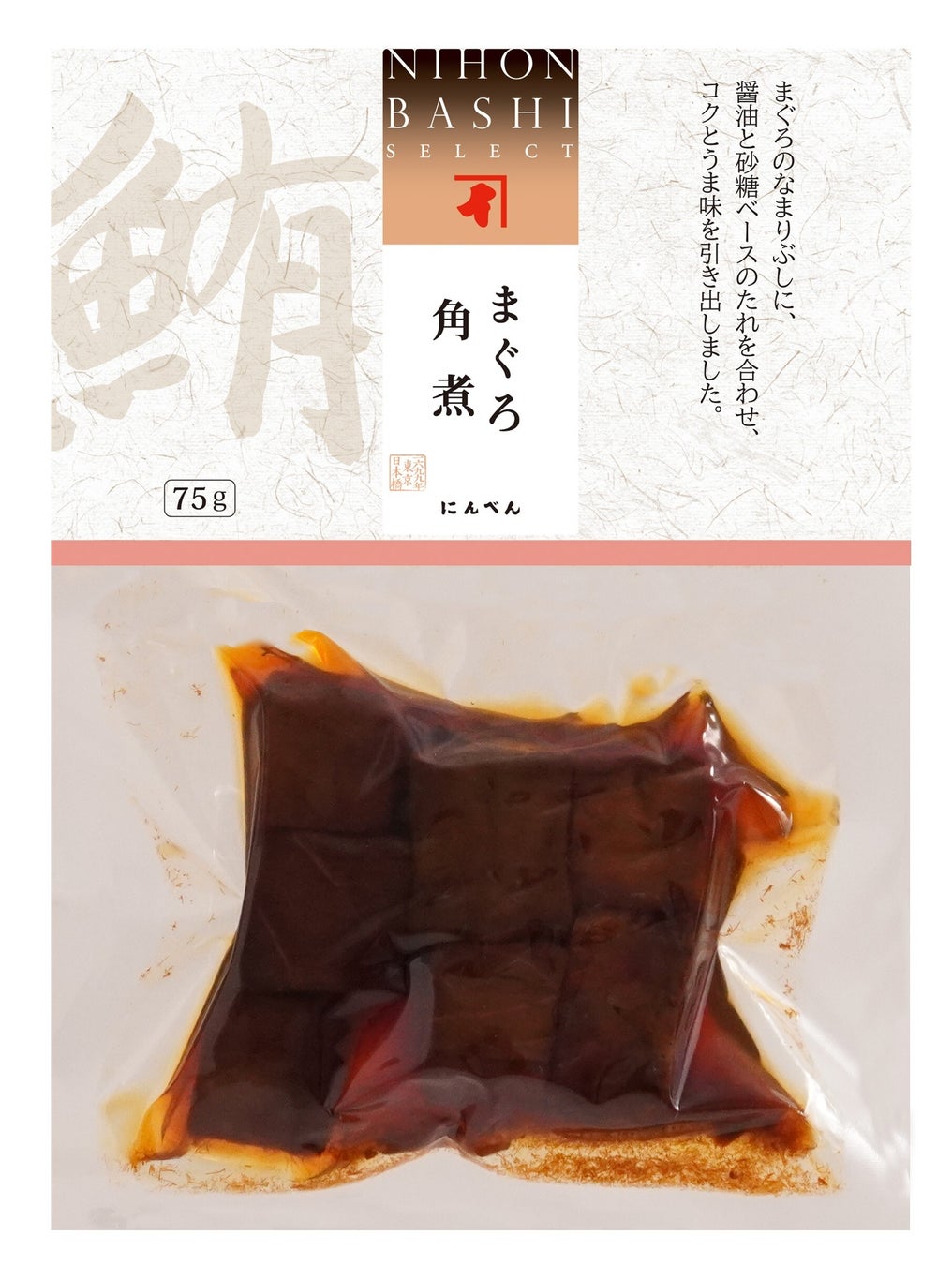 丁寧に燻すことで、旨みを凝縮したまぐろのなまりぶしを使用し、醤油と砂糖をベースにしたたれでじっくり炊き上げて、コクと旨みを引き出しました。しっとり仕上げた食べやすいサイズのまぐろの角煮です。