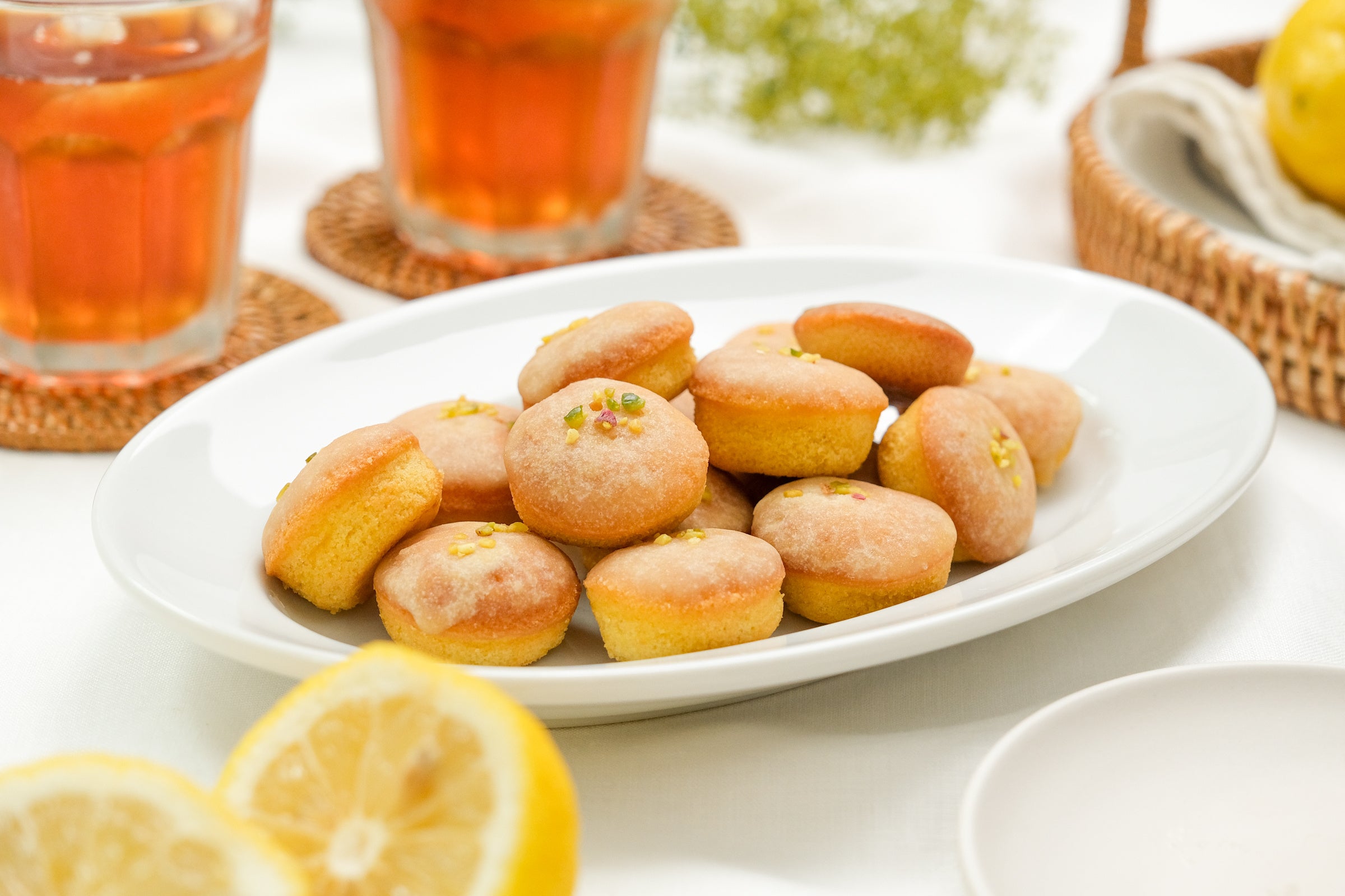 原材料:きび糖、卵、バター、小麦粉、アーモンドプードル、レモン果汁、ピスタチオ、レモンゼスト