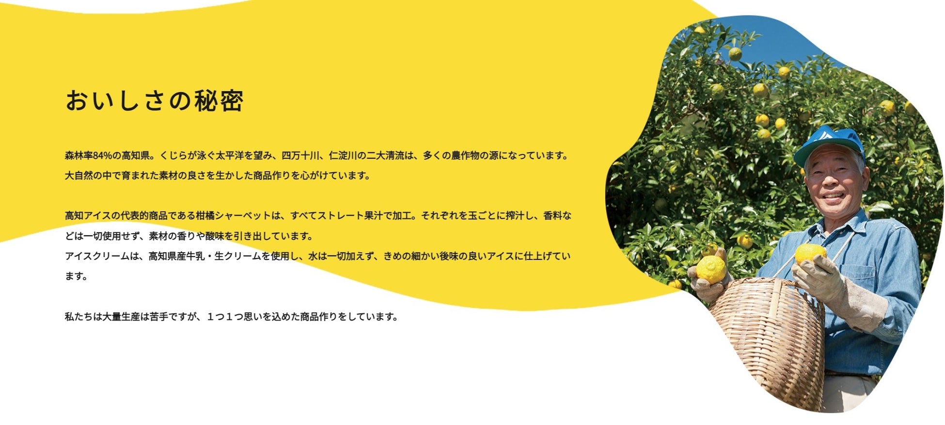 私たち高知アイスのスローガンは、「おいしい」を走ってさがすCOMPANYです。森林率84%、くじらが泳ぐ太平洋と二大清流(四万十川・仁淀川)に恵まれた高知の大自然を走り回り、おいしい素材を探しています。 今回の「ぶんたんレモン」も、生産者の元へ足を運び、信頼関係を築く中で出会った最高の土佐文旦があったからこそ生まれました。