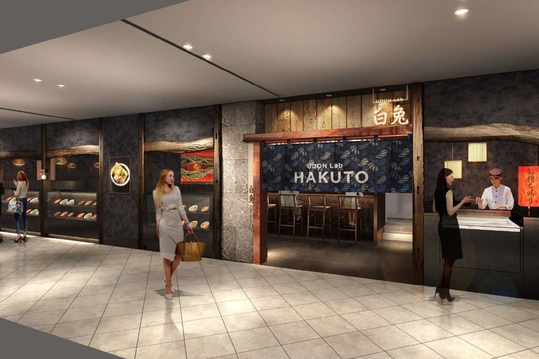 本店舗は、これまで大阪に3店舗展開してきた「天然大海老天丼 自家製おうどん 白狐」というブランドで培ってきた伝統的な自家製大阪うどんの技と味をベースに、今までの大阪うどんの概念を超えて新たに『饂飩前』というコンセプトを加えた進化形業態・姉妹ブランドとして、「白兎」を開発いたしました。