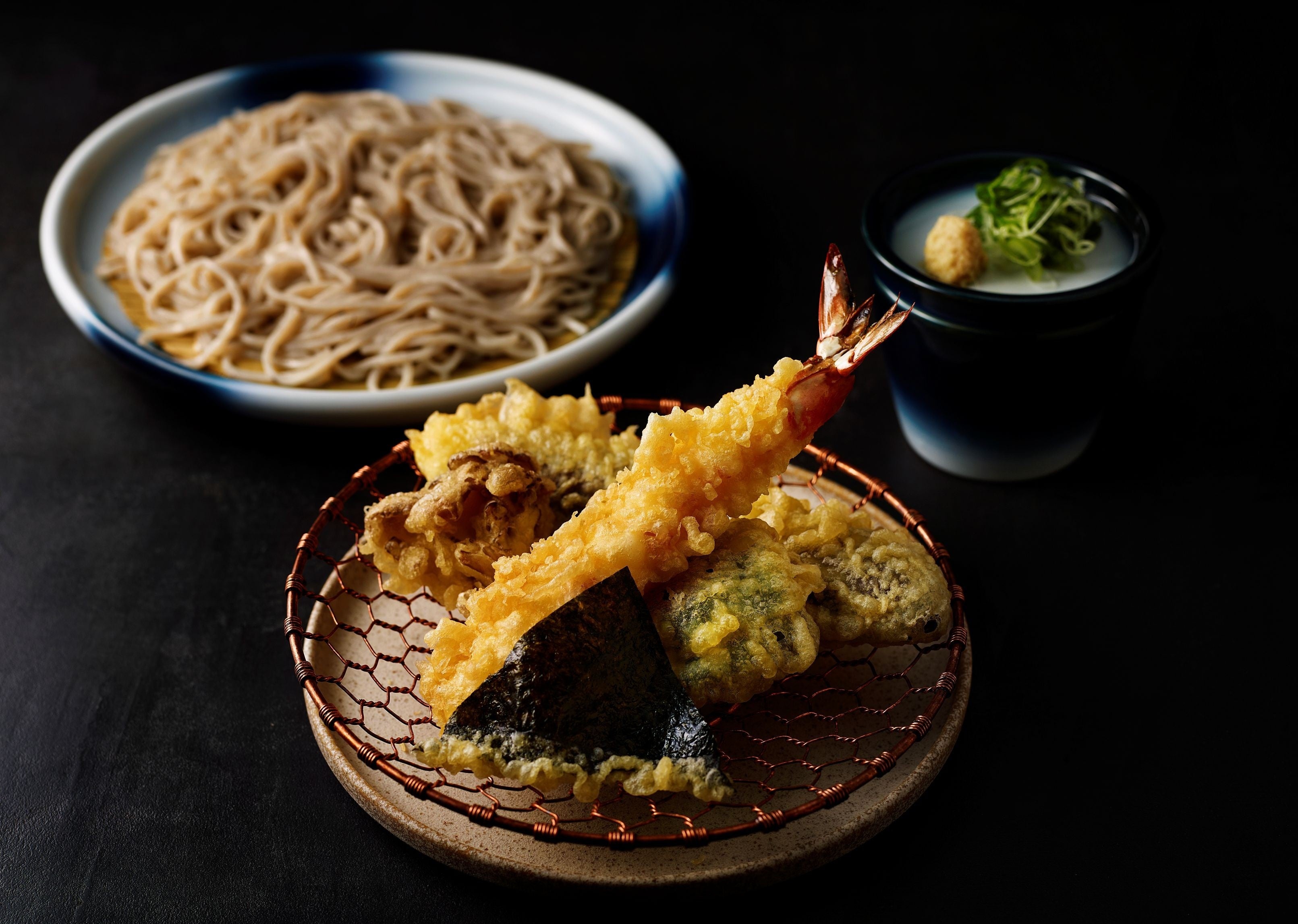 御影せいろうどんと天然大海老天とあしらい4種の天ぷら5種のセット