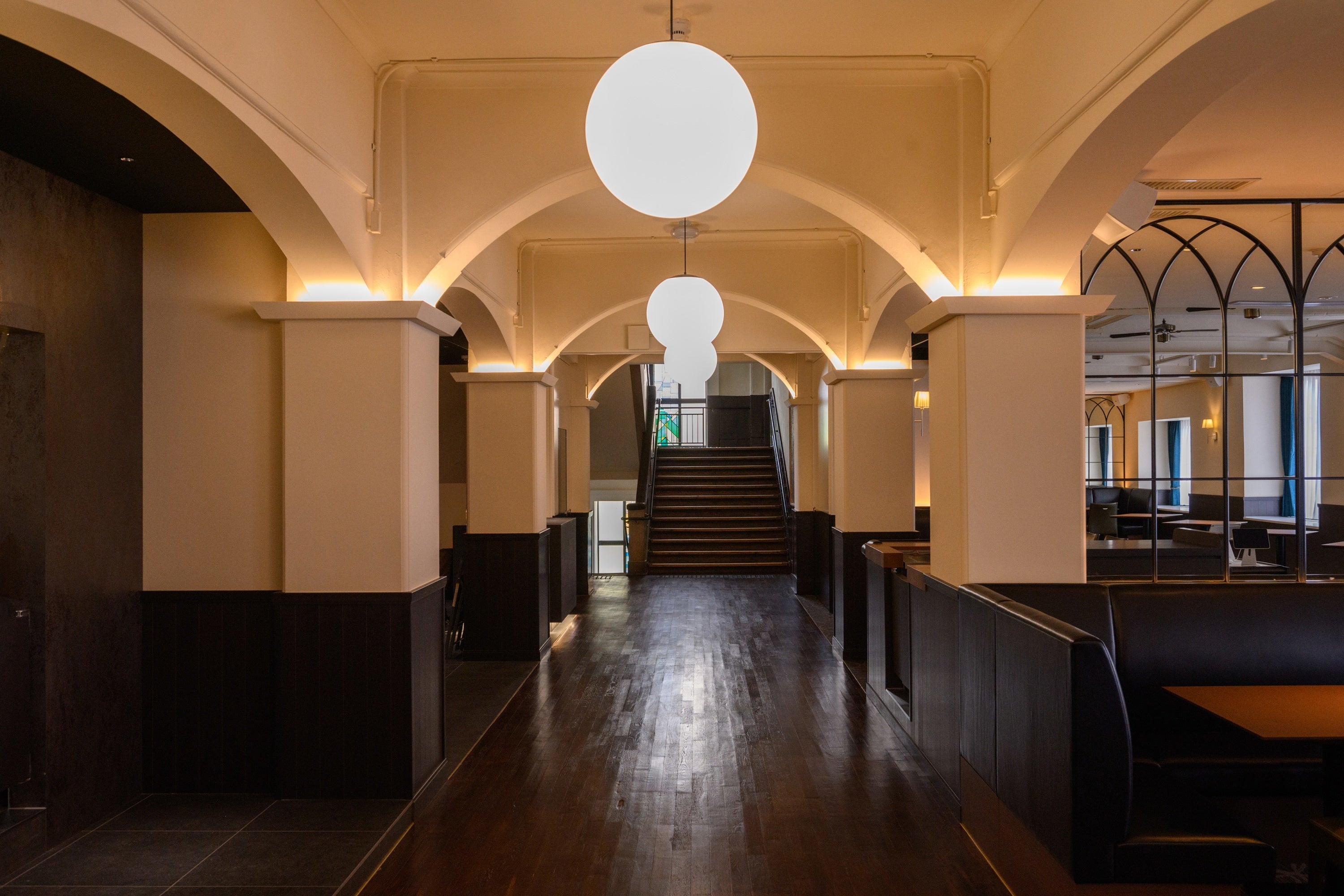 昭和6年に建てられた神戸市立北野小学校をリノベーションした店内は、軋む廊下の音、教室にデザインされていた美しいアーチなど、ノスタルジックな雰囲気をお愉しみいただけます。