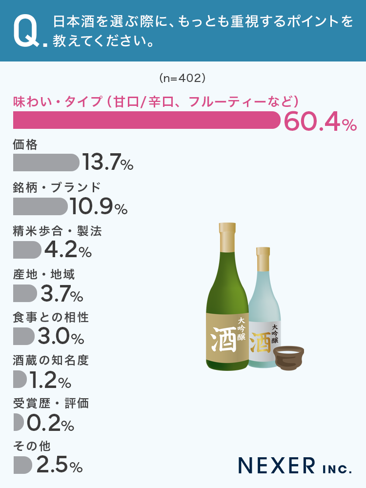 ■60.4%が「味わい・タイプ」で日本酒を選ぶと回答