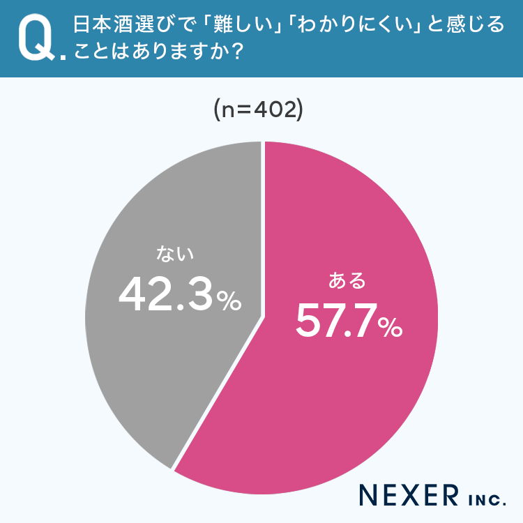 続いて、日本酒選びで「難しい」「わかりにくい」と感じることがあるかどうか調査しました。
