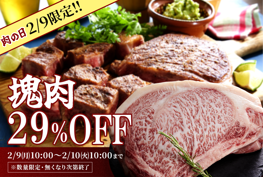 この「肉の日」に合わせて、『とれたてねっと』では2月9日限定で「肉の日スペシャル2026」を開催し、期間限定でブランド牛ブロック肉29%オフでの販売を実施いたします。