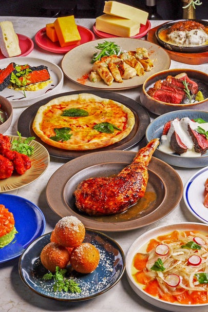 窯焼きナポリピッツァが食べ放!?さらに熱々鉄板チーズ&希少部位ステーキ含む全90種
