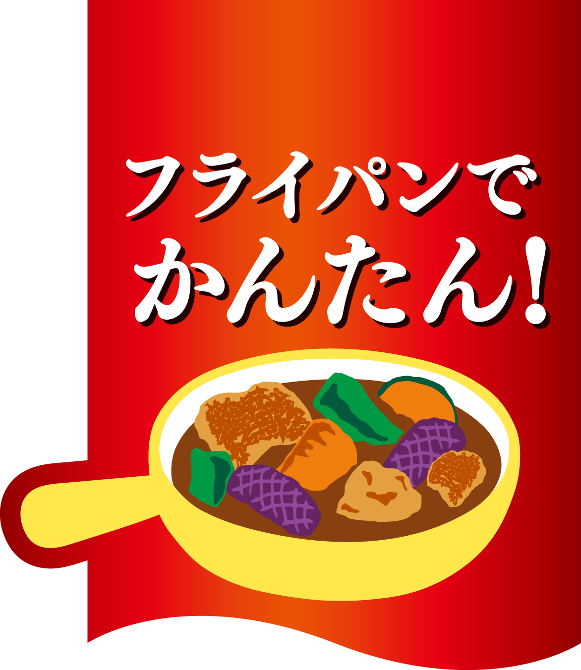 スープカレーの認知度は約95%もある一方、「知っているが食べたことがない」という人は約35%と認知度と食経験に大きな差があるメニューでした。(当社調べ 2024年 N=200)。このギャップを踏まえ、リニューアルによって再訴求を図ります。スープカレーの魅力として「野菜がおいしい」といった回答がもっとも多く(当社調べ 2024年 N=200)、今回のリニューアルでは調理工程を見直し、より野菜をおいしく召しあがっていただける作り方に変更しました。また、初めて作る方でも挑戦しやすいよう、フライパンひとつで調理が完結する設計とし、パッケージ前面に「フライパンでかんたん」のワンポイントマークを記載しました。