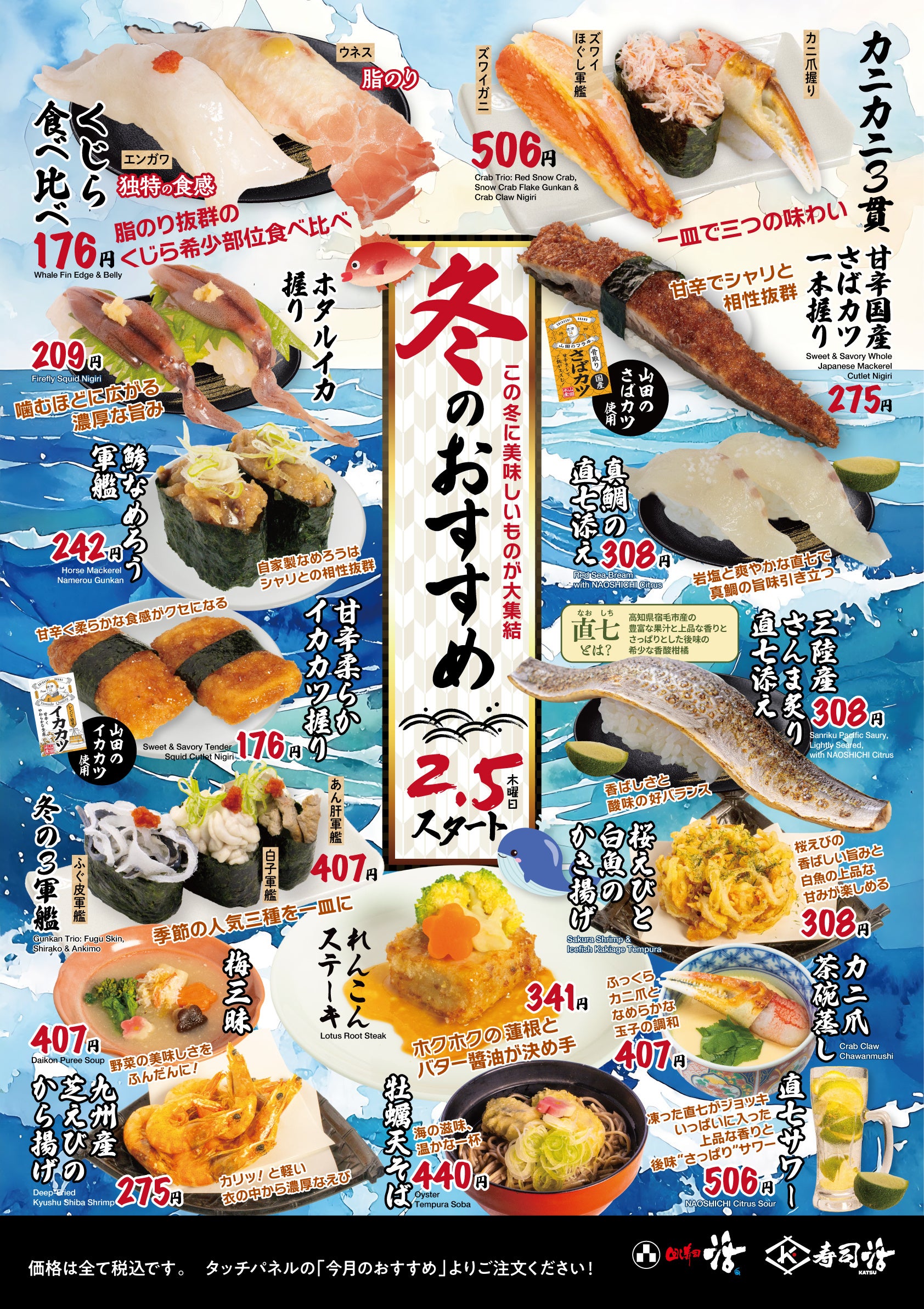 2月5日(木)より、「回し寿司 活」「寿司活」全店にて、冬の限定メニューがスタート