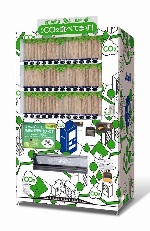 アサヒ飲料の「CO2を食べる自販機」を設置してCO2排出量の削減を図るとともに、吸収したCO2を建材などのカーボンリサイクル製品に活用