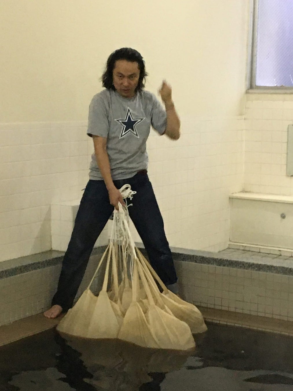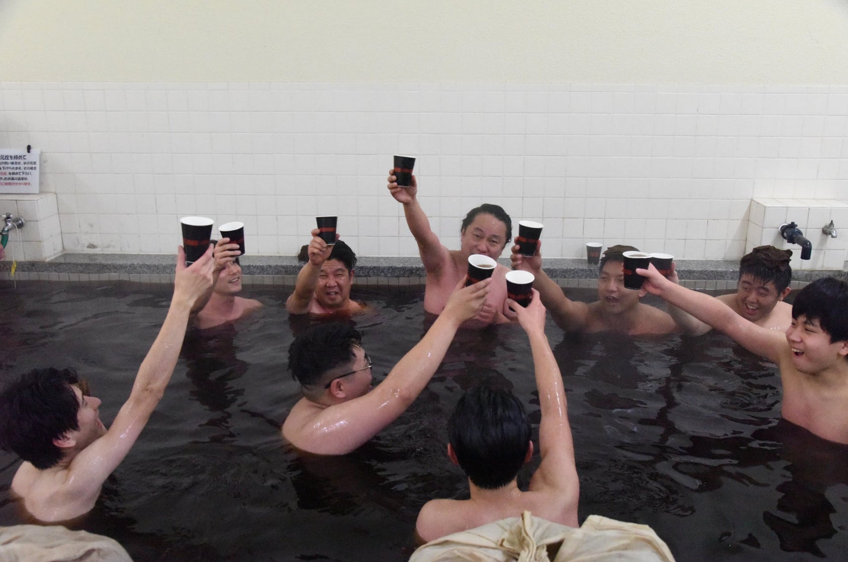 銭湯内のお湯の温度調整はおおよそ熱湯に近いお湯と水を使い5000リッター程度容量の湯船におおよそ4000リッターの温度を適温まで調整する。写真は2020年ごろのコーヒー風呂イベント時のコーヒー抽出の様子。