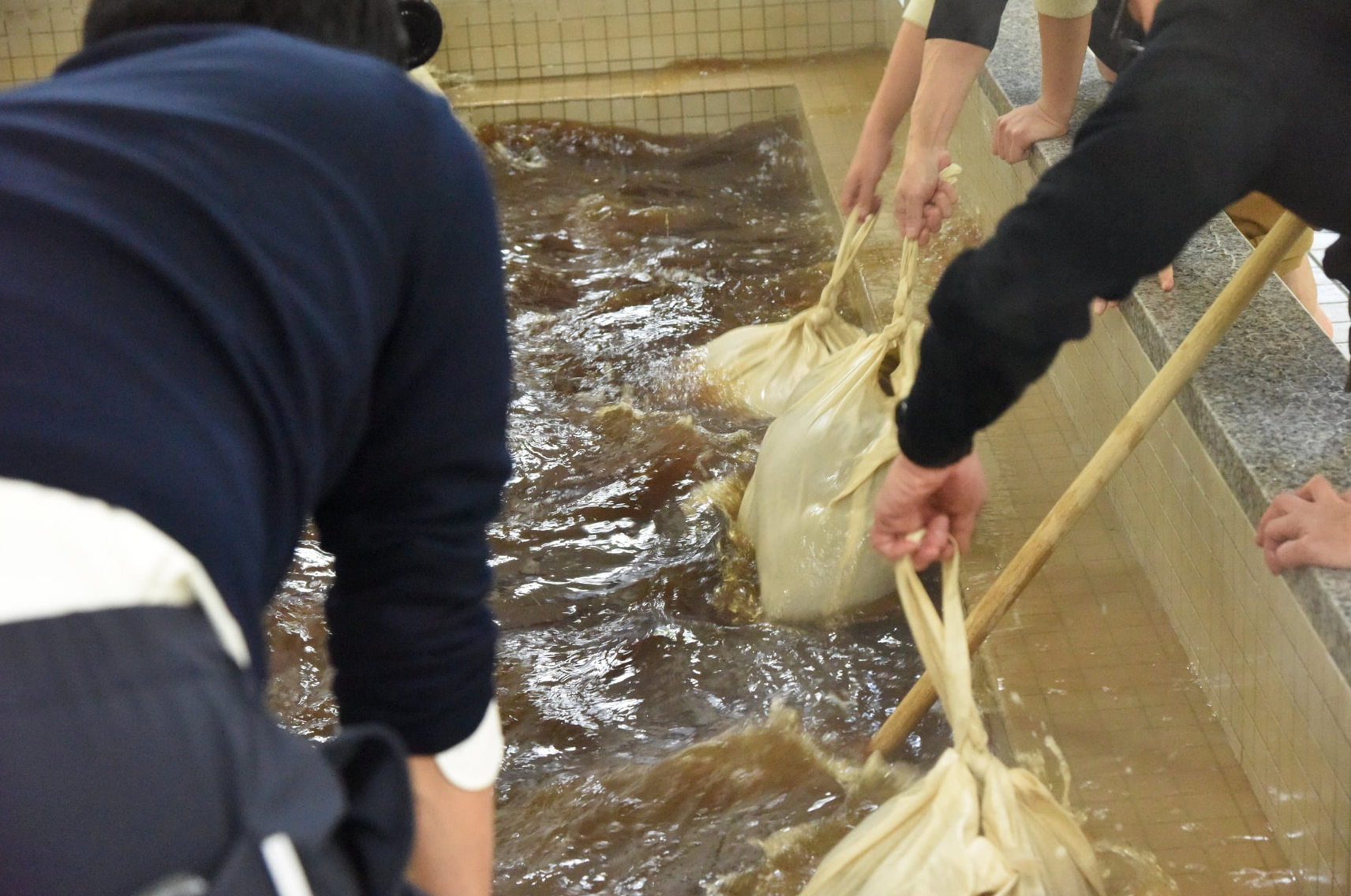 銭湯内のお湯の温度調整はおおよそ熱湯に近いお湯と水を使い5000リッター程度容量の湯船におおよそ4000リッターの温度を適温まで調整する。写真は2020年ごろのコーヒー風呂イベント時のコーヒー抽出の様子。