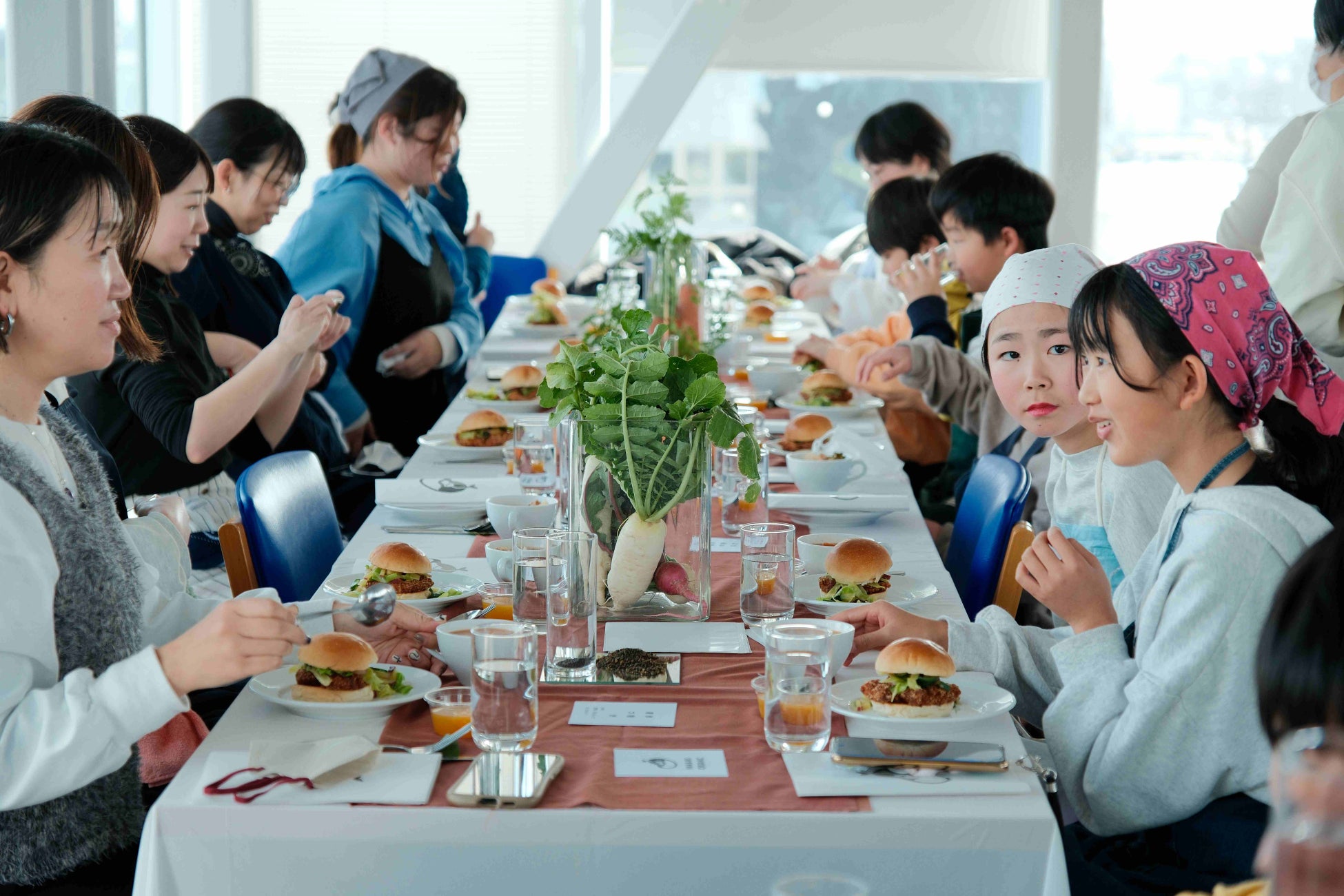 2月には有機野菜と今治産小麦を使ったバーガー給食が、