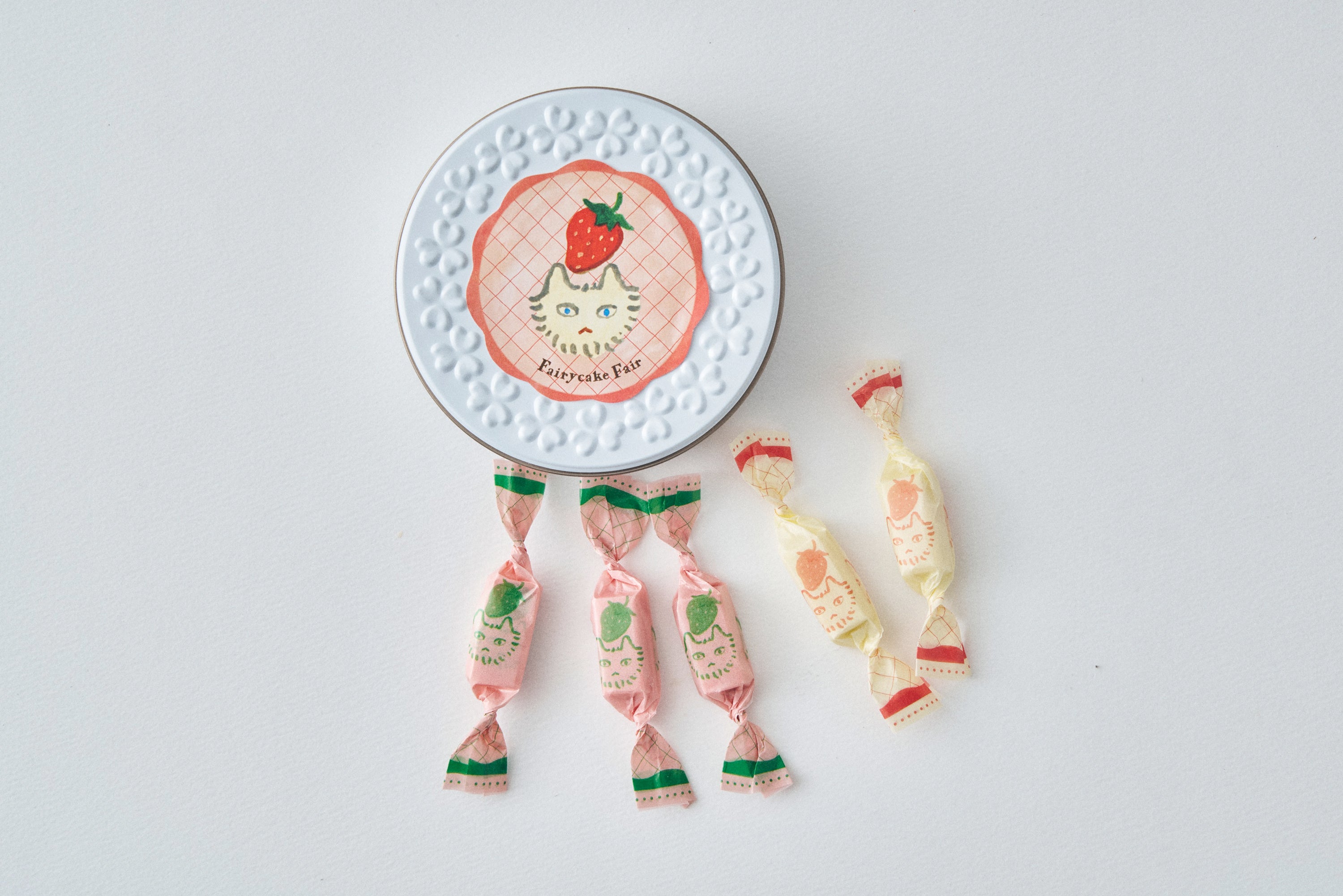 “神様のいたずら”のような、不思議な模様やユニークな特徴をもつミラクルキャットたちの愛おしさを伝えたくてうまれたお菓子。ミュージシャン・坂本美雨さん、イラストレーター・前田ひさえさん、フェアリーケーキフェアとの共同制作によって2021年にデビューした大人気のネコクッキー缶です。