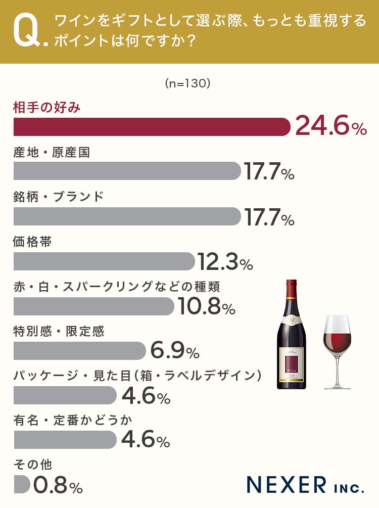 ■24.6%が、ワインギフト選びで「相手の好み」をもっとも重視すると回答