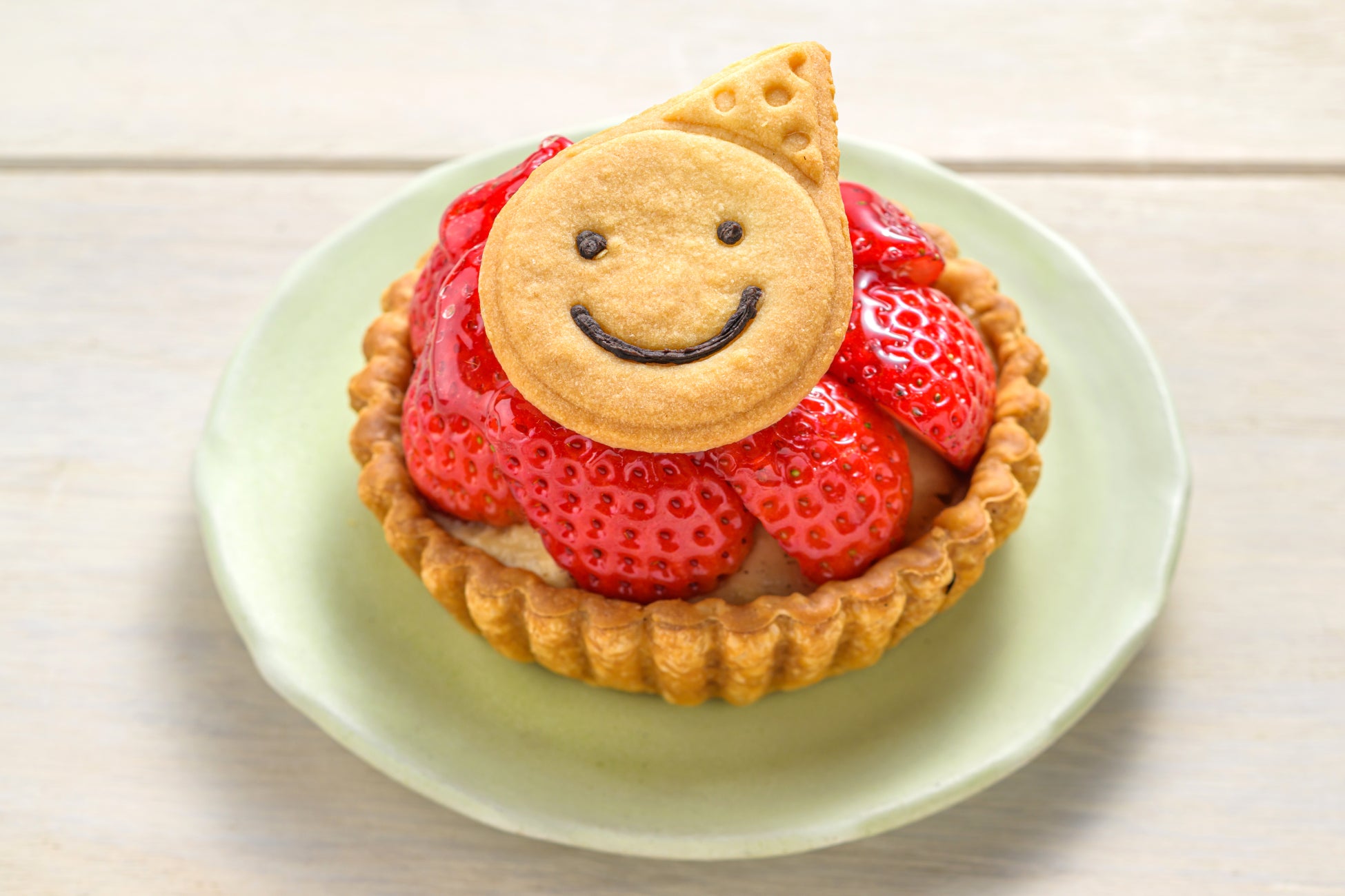 豆乳カスタードクリームとイチゴのタルト マルサン坊やのクッキーをのせて