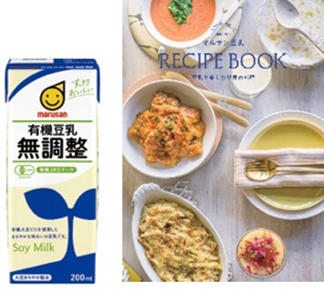 本イベントにご参加いただいた方には「有機豆乳無調整 200ml」を、また会場でSNS投稿&マルサンアイ公式SNSアカウントをフォローいただいた方にはオリジナルレシピブック「豆乳で楽しむ世界の料理」(非売品)をプレゼントいたします。