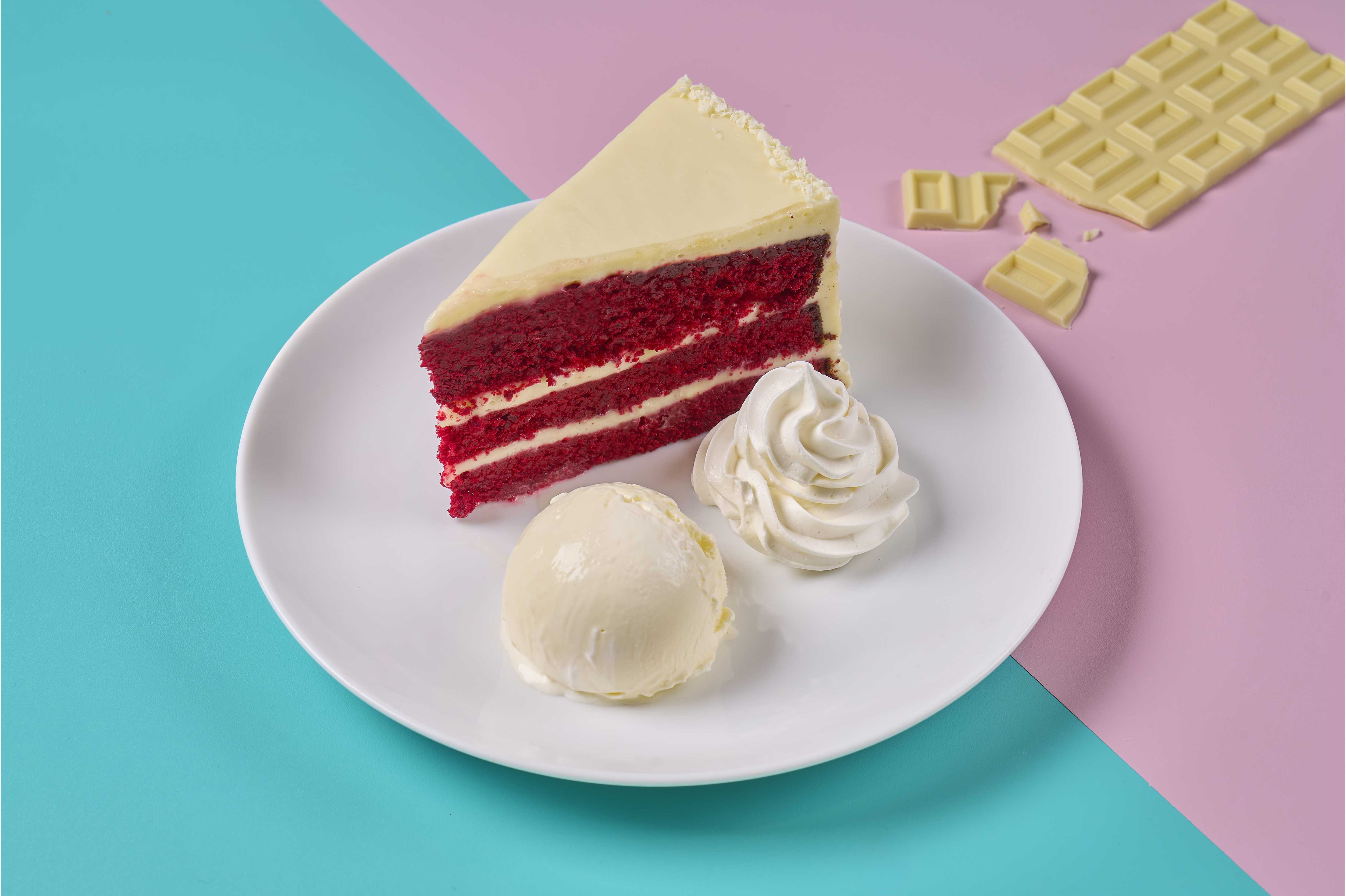 真っ白なフロスティングと、真っ赤なスポンジケーキのコンストラストが魅力的なアメリカ南部発祥の“レッドベルベットケーキ”は、海外展開の当該店舗でも提供されているポピュラーなデザートです。甘すぎずコクのある美味しさと、しっとりとした風合いでの大人気デザートを日本でもご用意しました。ココア風味のケーキをクリームチーズ風味のフロストでコーティング、添えたホイップクリームと共に食べれば、夢心地の味わい。甘さと酸味のバランスに加え、情熱的な赤、純粋な白のカラーで、熱い愛情を表現しました。アイスクリームをトッピングすれば、さらにリッチな味わいに。大切な方とシェアするのもおすすめです。
