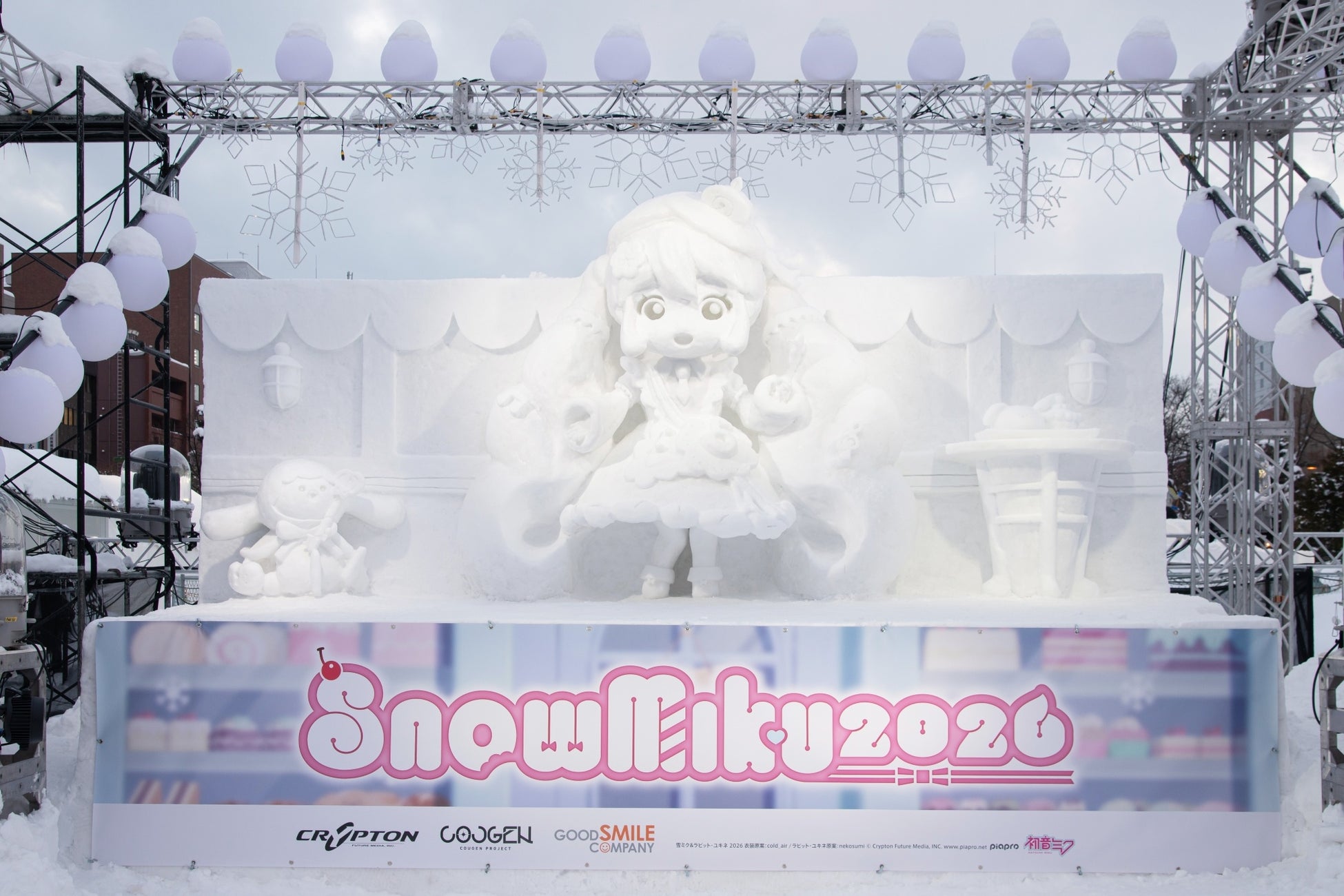 開催17年目となる今回は、”しあわせパティスリー”がテーマの衣装をまとった『雪ミク』が各所に登場。毎年恒例となっている「さっぽろ雪まつり」会場での雪像展示や、札幌市内でのラッピング電車の運行の他にも、札幌・小樽エリアを中心とした飲食店コラボなどを複数の企画を展開中です。いよいよ今週末に迎えるメインイベントに向けて「SNOW MIKU 2026」の楽しみ方をあらためてご紹介いたしますので、ぜひご参加ください。