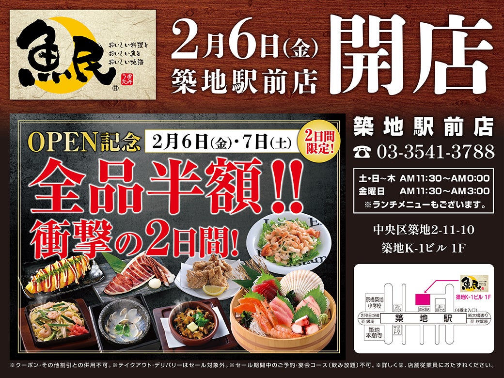 この機会にぜひ「魚民 築地駅前店」でご飲食をお楽しみください。