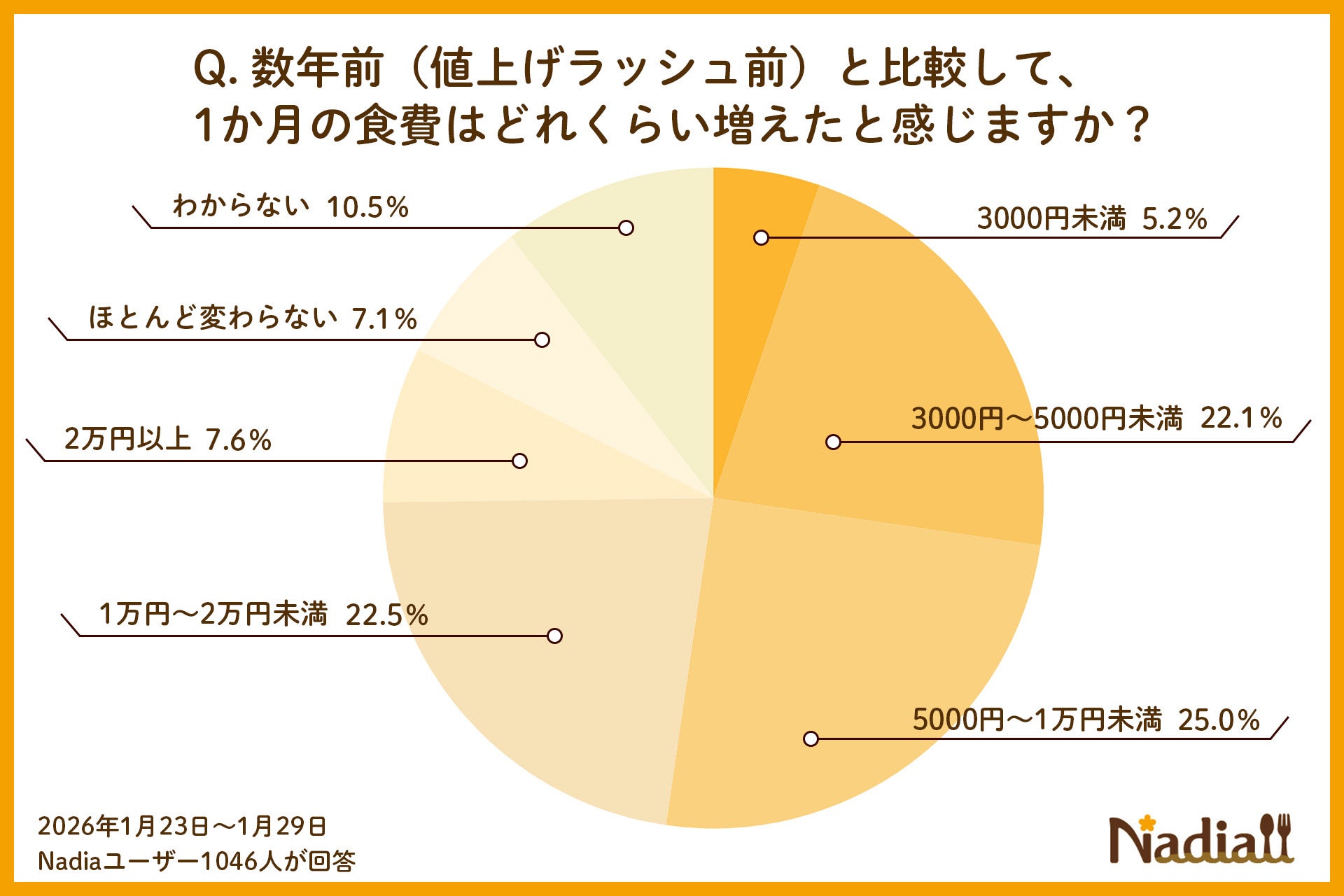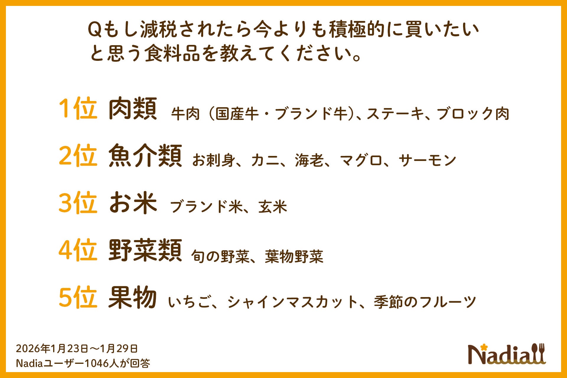 Nadia株式会社(東京都港区/代表取締役社長 葛城嘉紀)にて運営している料理メディア「Nadia(ナディア)」(URL:https://oceans-nadia.com/)は、食費の実態と食料品減税に関する意識調査(※1)を行いました。
