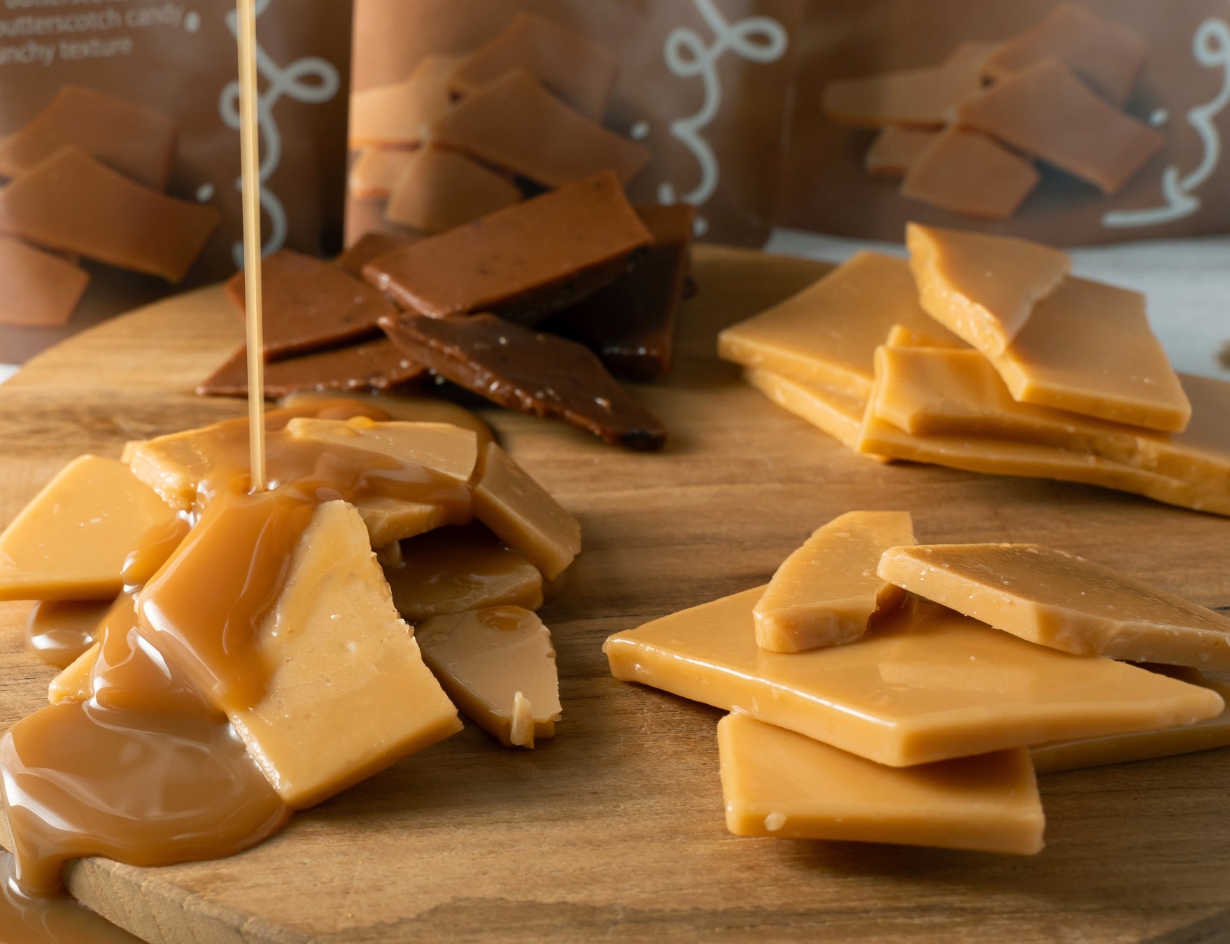 ャンディ。ザクッと鳴る音に、コク深いバターの香りが寄り添って、普段の時間が甘くやさしいひと時になる。そんな噛むたび幸せ広がるバタースコッチキャンディです。