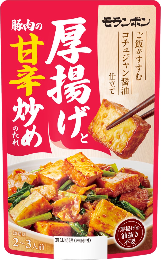 モランボン株式会社(本社:東京都府中市 代表取締役社長:全 峰 碩)は、日配売場向けの商品として、「厚揚げと豚肉の味噌炒めのたれ」「厚揚げと豚肉の甘辛炒めのたれ」を2026年2月15日(日)よりリニューアル発売いたします。