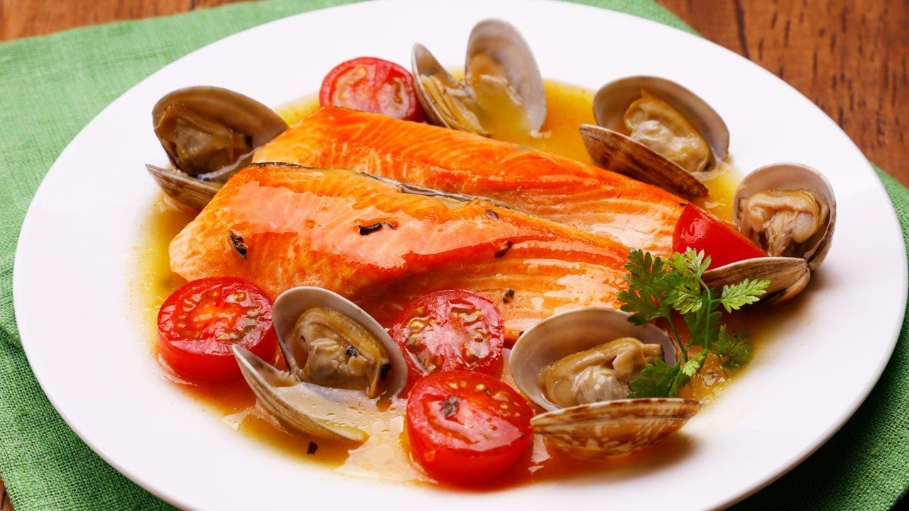 汎用性の高いさけを使用!見た目も鮮やかなアクアパッツァができます。